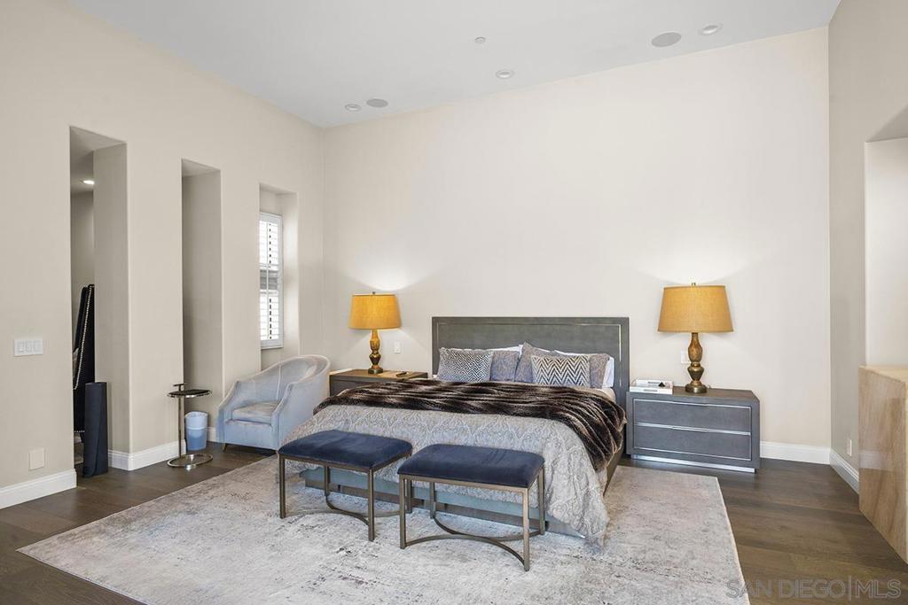 Contemporary custom executive estate located in the gated Belmonte community of Rancho Del Rey. Set on a rare half-acre lot, this exceptional property offers resort-style outdoor amenities including a pool, BBQ area, full exterior bathroom, and private tennis court—ideal for entertaining and everyday enjoyment. The interior features 6 bedrooms, 6 full baths, and 3 half baths, highlighted by a spacious primary suite, a separate downstairs living area, and four zoned A/C systems for optimal comfort. Additional highlights include 30 owned solar panels and no Mello-Roos (expired in 2021)