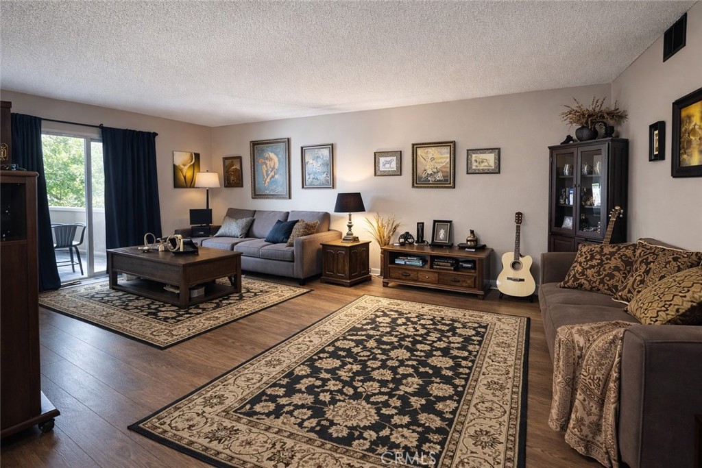 Welcome to this well-maintained 2-bedroom, 1-bathroom end-unit condo ideally located in the heart of Sylmar. Enjoy two spacious bedrooms and a full bathroom. Step outside to your own private patio. Include a shared garage with two parking spaces, extra storage, and an in-garage washer & dryer—both included with the unit. The community offers great amenities such as a sparkling pool and spa, all with a low HOA that covers water and trash.