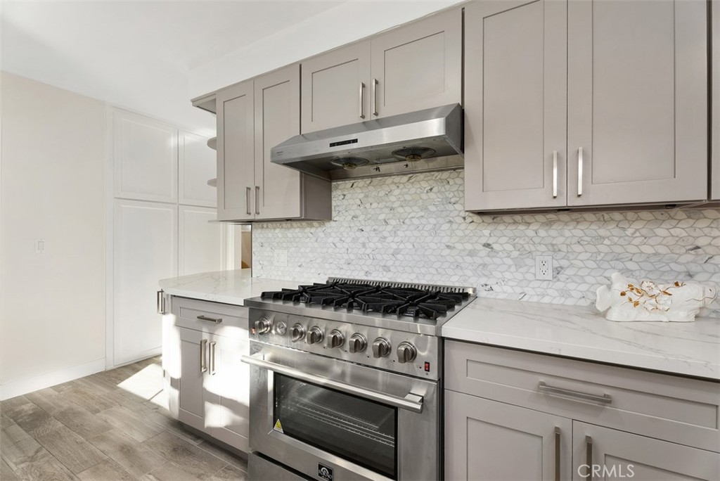 Set on a generous lot in the highly desirable San Juan Tract of Fullerton, 3030 San Juan Drive offers a rare blend of desirable location, space, and fully turnkey living. This 4 bedroom, 4 bathroom residence has been completely remodeled with a thoughtful eye toward quality, flow, and timeless design. Wide plank white oak floors run throughout the home, anchoring the light-filled interior and complementing the clean, modern palette. The kitchen is both elegant and functional, featuring custom cabinetry, expansive quartz countertops, designer tile backsplash, and a layout ideal for everyday living and entertaining alike. The living and dining spaces are warm and inviting, centered around a statement fireplace and opening seamlessly to the outdoors through large sliding glass doors. A spacious bonus/entertainment room provides exceptional flexibility; perfect for a media room, playroom, home office, or guest retreat. Each bathroom has been fully reimagined with custom finishes and full glass shower enclosures, delivering a spa-like experience with a cohesive, elevated aesthetic. The primary and secondary baths showcase designer tile, modern fixtures, and refined detailing throughout. Outside, the property offers multiple outdoor living areas, including a covered patio ideal for dining or lounging, all surrounded by mature landscaping that enhances privacy and tranquility. Located near top-rated schools, parks, shopping, and dining, this is a true turnkey opportunity in one of Fullerton’s most established and sought-after neighborhoods.