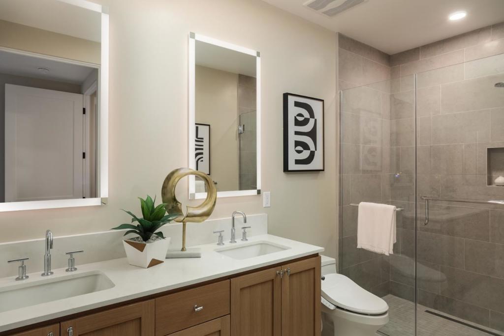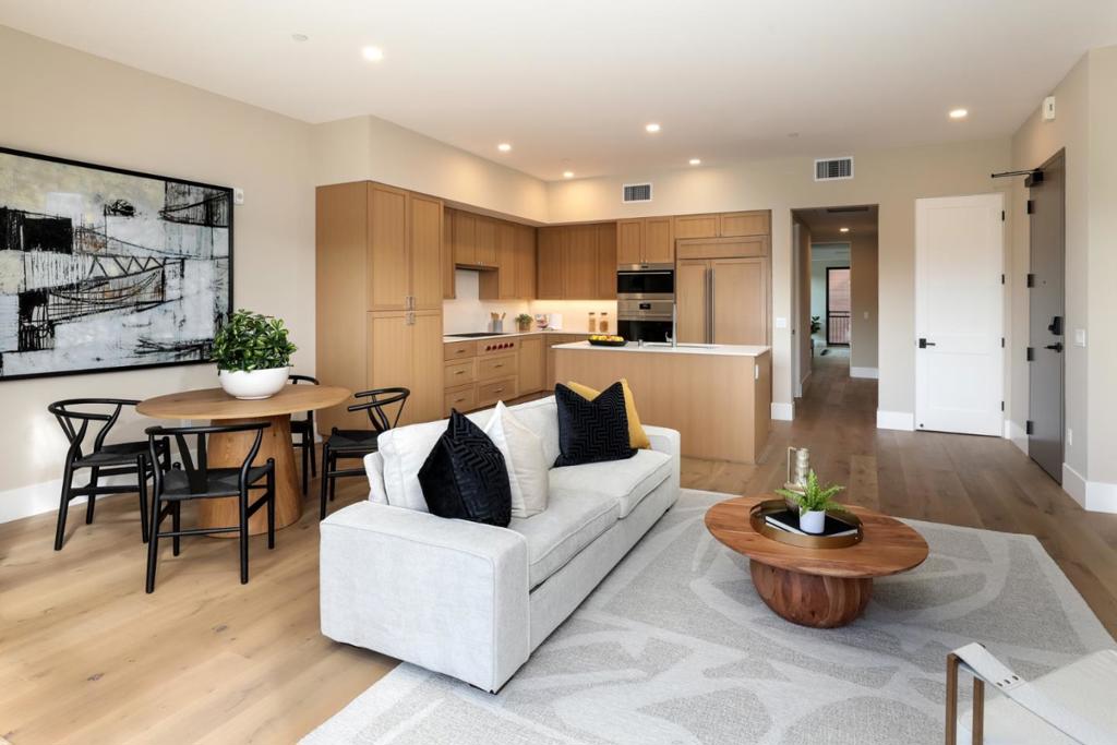 Penthouse level in a new luxury condominiums in downtown Los Altos*only 10 residential units*fitness center*roof top deck with full kitchen, seating, fire-table, and barbecue with views*two interior courtyard gardens*2-hour fire rated for added safety*extra layers of drywall for sound*gas fireplaces*heated flooring in primary bath*curb-less shower w/linear drains and bench seat*La Cantina bifold doors to pedestal balcony*bidet toilet in primary bath*gas Wolf cooktop*Sub-zero appliances*slow-close rift sawn real white oak cabinetry*real white oak 7.5 inch plank flooring*Caesarstone quartz counter top and backsplash*backlit and defogging mirrors*solid core doors*level 4-5 finish on walls*9-14 foot unit ceiling height* washer & dryer included*tankless water heater*nest thermostats*private storage locker at grade*shared bike storage room*one parking space per bedroom*extra wide and tall hallways*custom solid oak-stained stairway in shared areas*elevator finished with gold metal, an end-cut, butcher block & white oak flooring*custom Los Altos art throughout the building to help feel at home*everything you would expect in a luxury development* conveniently located in downtown Los Altos and an easy walk to Draegers/Los Altos Grill/Safeway/Main Street/State Street,&more*Los Altos Schools