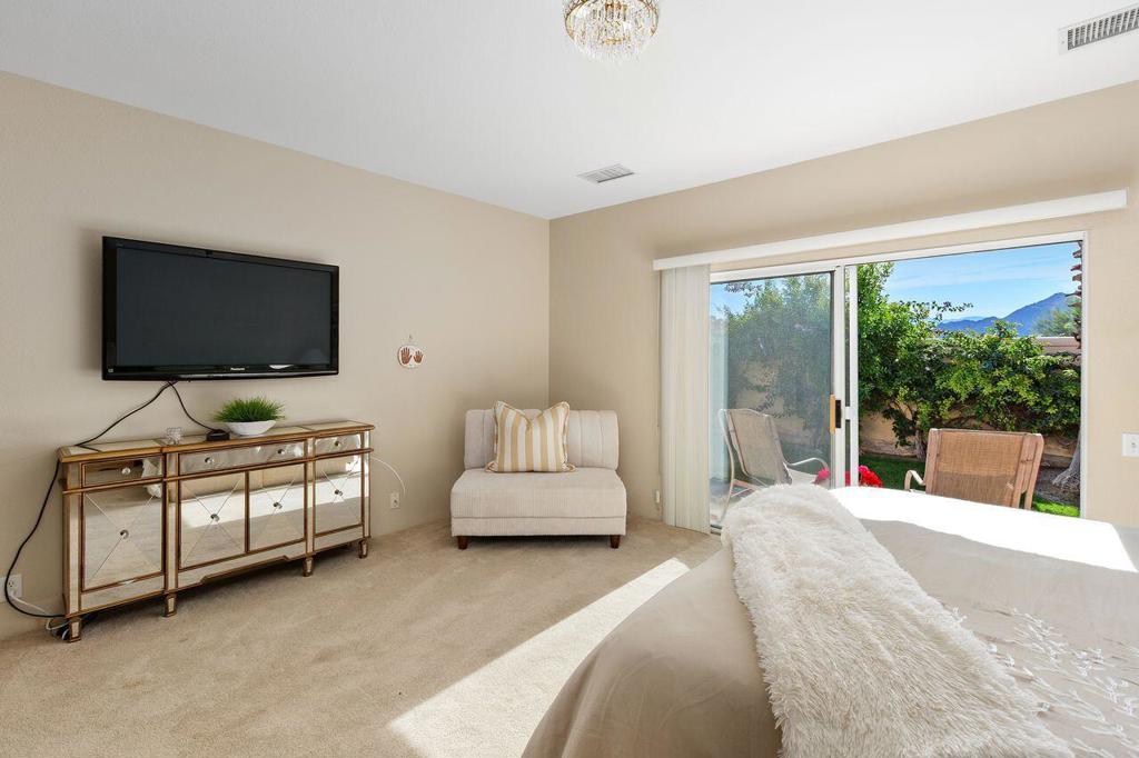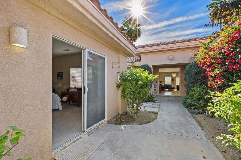 Motivated seller ready for Quick Sale.....** Lowest Price Home in ALL Lake La Quinta** ** Low Utilities bill w/ IID** **24/7 Live Guard Gated Community ** ** LOW HOA** ** Bring us an offer** ** Two Car + Golf Cart Garage** ** Detached Casita** Charming Home with 2B/2B + Den PLUS 1BR/1BA detached Guest Casita totaling 2500(+) SQ.FT of interior living space. Enter residence through metal gate casita is on left, proceed to front door walking through charming hacienda style courtyard features iconic blue shutters, flagstone and mature bougainvilla trees exposing privacy, rustic charm and ultimate desert vibes . Main house is open floor plan w/ high vaulted ceiling, formal living/ dining room and a bonus room used currently as an office. Chef's sized kitchen boasts solid wood cabinetry topped with quartz counter tops, featuring stainless steel / black appliances, double ovens and is flowing seamlessly into inviting family room complete with a cozy fireplace, sliding glass doors that open to north patio where you will enjoy views of lush green grass, palm trees and beautiful Santa Rosa Mountain. Primary bedroom is large with high ceilings, light cream color carpet and has access to outdoor patio. Primary bathroom has double vanity, enclosed glass shower, large soaking tub and huge walk-in closet. Home Sold AS-IS. Lake La Quinta is a 25 acre man -made Lake, offer non-motorized boating, kayaking, paddle boating and fishing w/ species like bluegill, catfish and bass.Residents enjoy shared amenities such as community pool, tennis courts, BBQ and picnic area, boat dock and boat-launch site, along boat club for residents. Schedule your private showing today!!!