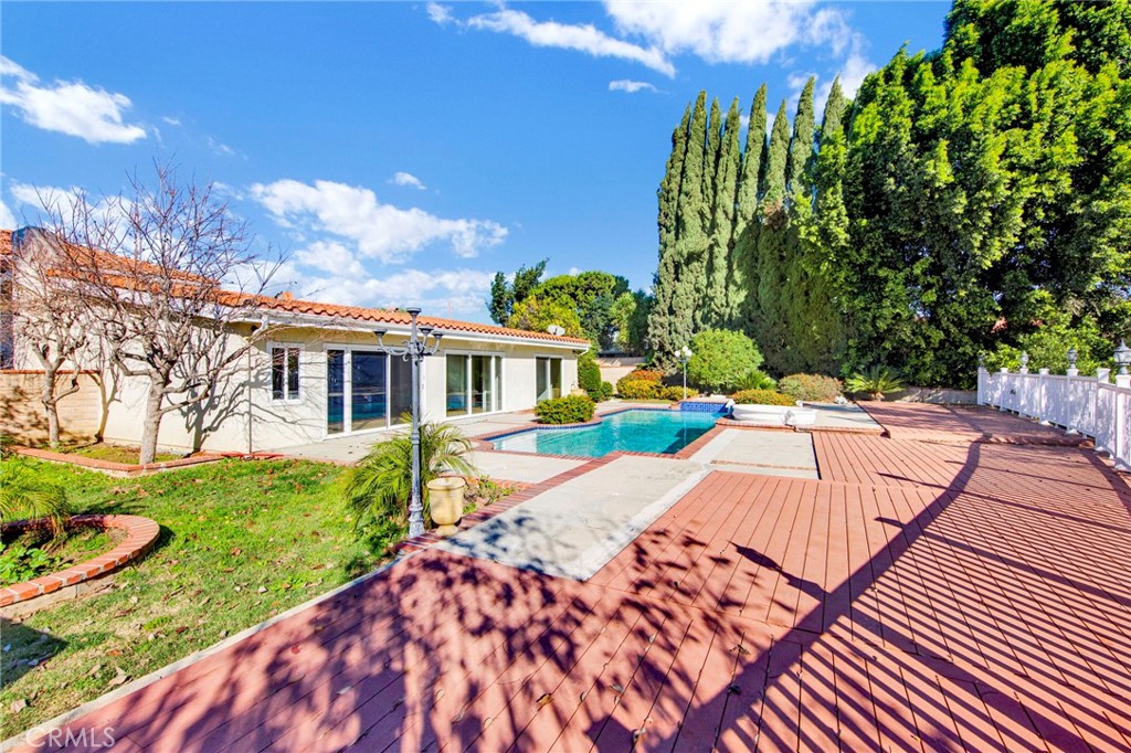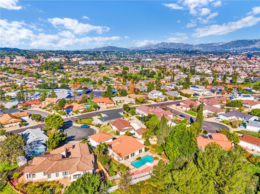 Welcome to 1641 Copa Way, a spacious hillside residence tucked away on a quiet cul-de-sac in Monterey Park, offering sweeping panoramic views of the San Gabriel Valley, Downtown Los Angeles, and the surrounding hillside scenery. Set on an expansive 11,166 sq. ft. lot, the property combines elevation, privacy, and a versatile layout well suited for everyday living and entertaining. The home features 4 bedrooms and 4 bathrooms across approximately 2,654 sq. ft., highlighted by an expansive open-concept great room filled with natural light. Warm wood flooring and an interior fireplace anchor the main gathering space, while large sliding doors allow the great room to flow seamlessly outdoors, creating an ideal indoor–outdoor living experience. The private backyard offers a sparkling pool, expansive deck, and fruit trees, providing generous space for outdoor gatherings, dining, or relaxed weekends enjoying the elevated hillside setting. A well-appointed kitchen with a center island provides ample storage and counter space and connects naturally to the main living areas. The thoughtfully designed floor plan includes two primary suites on the main level, offering flexible single-level living options, extended guest accommodations, or adaptable space to suit a variety of lifestyle needs. Upstairs, two additional bedrooms, a bathroom, and an upstairs family room provide additional living space suitable for work, recreation, or everyday use. The home is conveniently located near the Monterey Park Golf Course, local parks, dining, and everyday amenities, with easy access to the 10, 60, and 710 freeways. Downtown Los Angeles, USC, and Cal State LA are all within a comfortable commute. Residents are served by the Alhambra Unified School District, including Monterey Highlands K–8 School, recognized by U.S. News & World Report as a Best Elementary School and Best Middle School, and Mark Keppel High School, a California Distinguished School known for strong academic performance and competitive team achievements. Additional notes: County records reflect the property address as 1641 Copa Way; however, the physical address displayed on the home and sidewalk currently shows 1611. Assessor records reflect 3 bedrooms and 3 bathrooms. Property offers a flexible layout with additional space. Buyer to verify. Some photos have been virtually staged to illustrate potential furnishings and use of space.