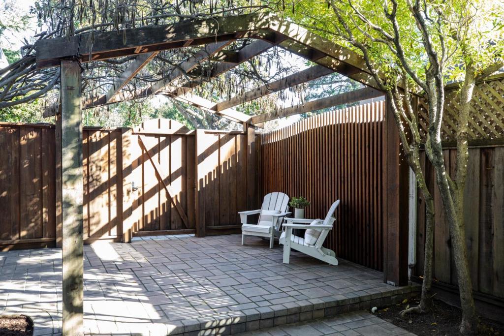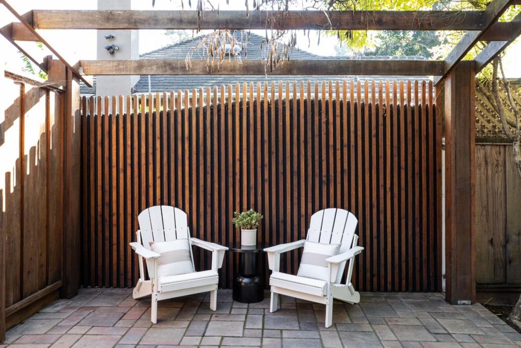 This beautifully reimagined single-level residence delivers timeless character, modern sophistication, and exceptional indoor-outdoor living on a desirable level lot. Approximately 1,100 square feet of thoughtfully designed space includes two bedrooms, a versatile bonus room/office, and a spa-inspired bathroom. Sunlight fills the inviting living room, anchored by a charming bay window and wood-burning fireplace, while the dining area framed by its own bay window creates an ideal setting for everyday meals and entertaining. The remodeled kitchen is both elegant and functional, featuring shaker cabinetry, quartz countertops, glass tile backsplash, stainless steel appliances, and seamless access to the backyard. The luxurious bathroom offers ceramic tile floors, a floating vanity with lighted mirror, a spacious tiled shower with dual shower heads, built-in bench, frameless glass enclosure, and bidet-style toilet. The primary bedroom includes custom built-ins, and the bonus room impresses with vaulted ceilings, skylights, and French doors opening outdoors. A charming front porch, private backyard retreat with pergola, paver patio, and putting green complete the experience. Ideally located near downtown Palo Alto, Stanford, Caltrain, Highway 101 plus outstanding Palo Alto schools!
