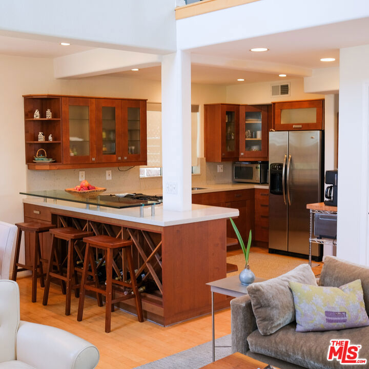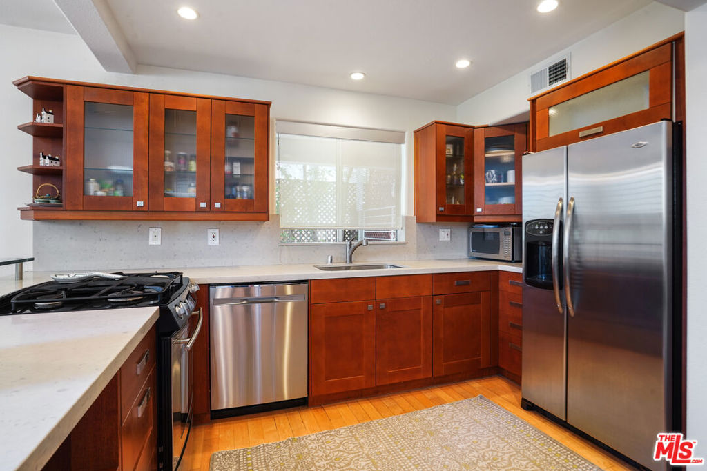 Welcome to this stunning, contemporary townhouse nestled in one of Santa Monica's most desirable boutique buildings, home to just five exclusive residences. Rarely available, this private retreat offers the perfect blend of modern design and comfort in a prime location.Inside, soaring ceilings and rich wood flooring create a light-filled, open atmosphere throughout the main living areas. The thoughtfully designed floor plan features two spacious bedrooms, two and a half baths, a cozy family room, a dedicated office, and a versatile flex spaceideal for today's work-from-home lifestyle or additional entertaining. Both bedrooms open to private balconies, providing peaceful outdoor escapes, while the beautifully updated bathrooms bring a refined, spa-like touch to everyday living. A private, direct-access garage and an oversized storage roomperfect for bikes, fitness equipment, or a home gymadd exceptional convenience and value. This extra space is not included in the listed square footage. HOA includes earthquake insurance! Located in a prime Santa Monica neighborhood close to top-rated schools, transit, dining, and shopping, this residence offers the rare opportunity to enjoy luxury, privacy, and walkable city living in one elegant package. Don't miss this rare opportunity to own a private townhouse in one of Santa Monica's best neighborhoods.