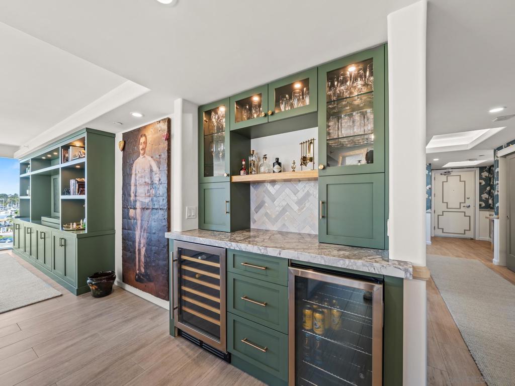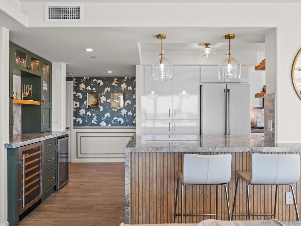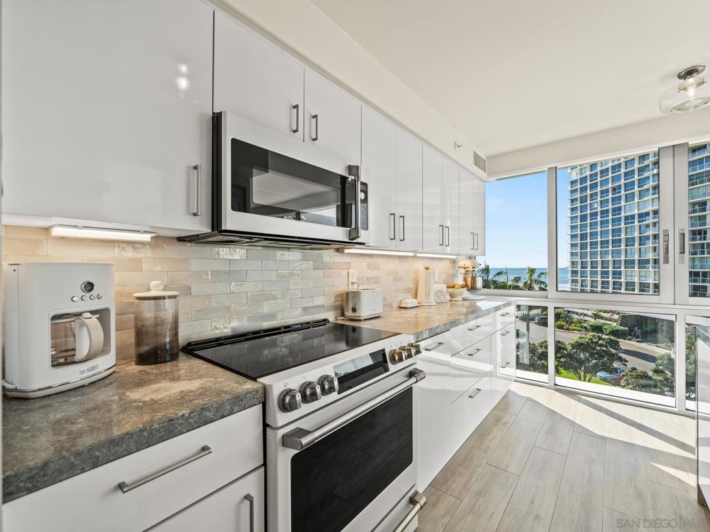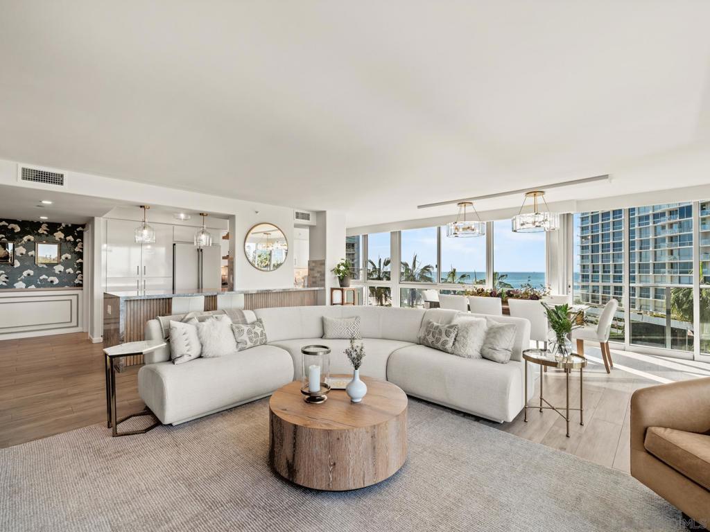 This is the best three-bedroom unit currently on the market based on location, price, inclusions, and tower! If you are a buyer seeking space, light, turnkey living, and panoramic views of the Pacific Ocean, Hotel del Coronado, the San Diego skyline, the bay, the golf course, and stunning sunsets, this home is for you. This corner residence features a thoughtfully designed layout and is offered fully furnished with high-end designer pieces. The interiors have been curated with exquisite craftsmanship and style. Highlights include hand-crafted woodwork in the living room and bar, custom trim in the hallway and primary suite, handmade tile in the kitchen and bathrooms, and designer wallpaper accents. The chef’s kitchen features all-new GE Café Signature Collection appliances. Additional upgrades include new windows, automatic blinds, new interior doors and casings, upgraded lighting and sconces, and a new washer and dryer. Located in La Princesa, the newest and recently remodeled tower at The Shores, this one-of-a-kind home is complemented by beautifully renovated modern lobbies and hallways, offering a refined balance of classic elegance and coastal charm.