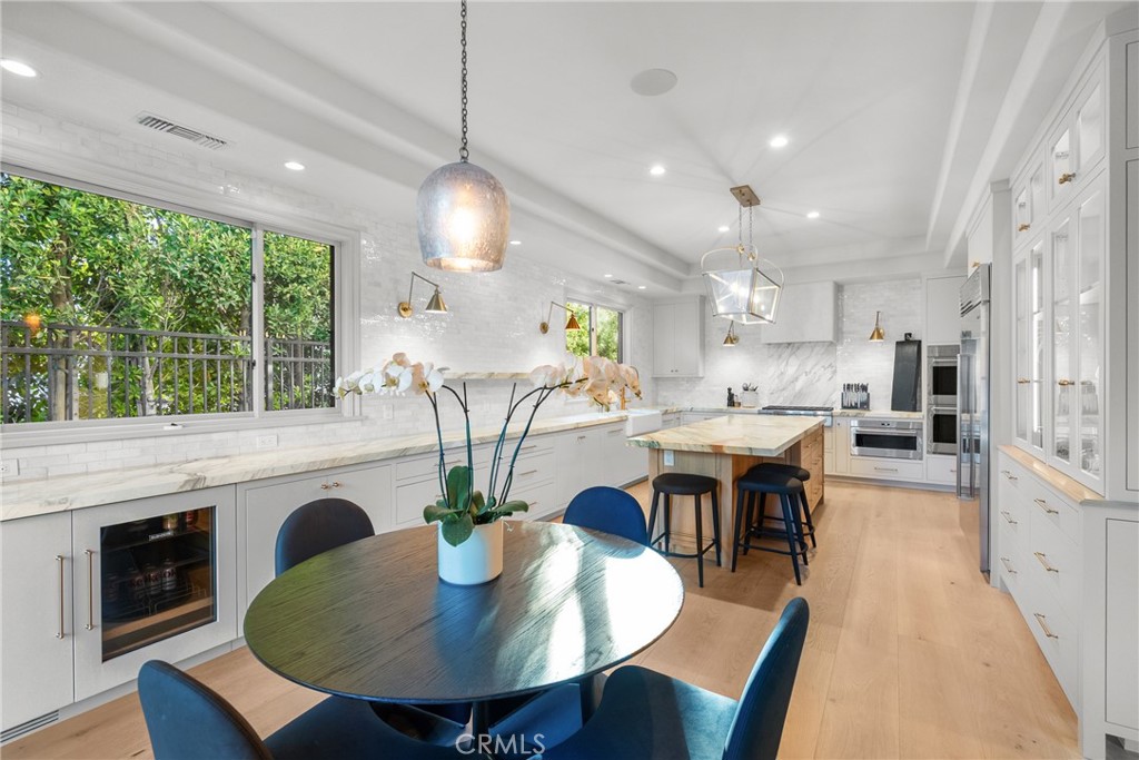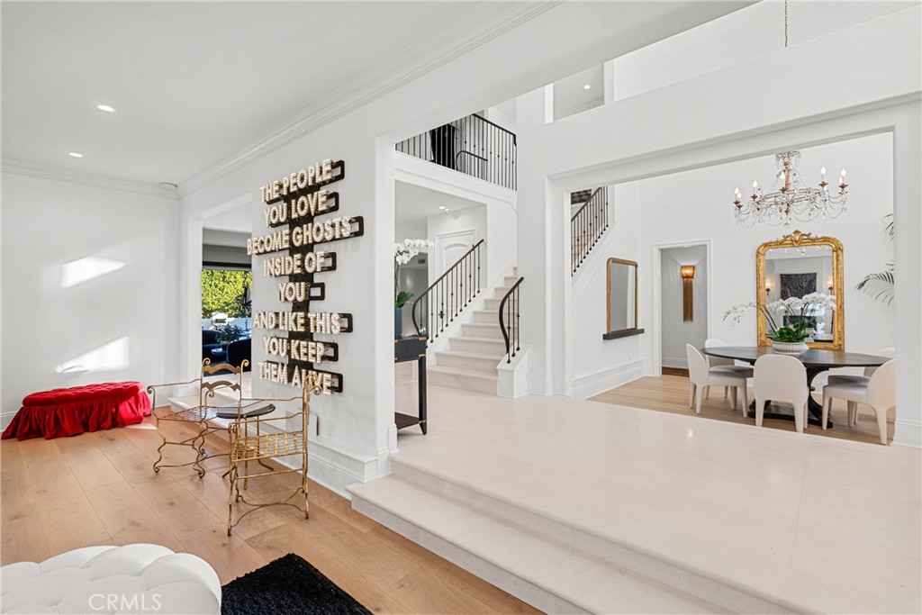 Welcome home to this stylish and elegant home in the guard-gated community of The Ridge in the heart of Calabasas. Situated near the end of a cul-de-sac, this extensively renovated home has been updated to the highest standards - with no expense spared - and is perfectly designed to enjoy indoor-outdoor living at its best. As you enter the two-story foyer, you'll notice the gorgeous large slab limestone floors, an abundance of natural light, and beautifully appointed formal living and dining rooms on either side. Just beyond, the spacious family room with fireplace looks out over the entertainer's backyard and flows into the show-stopping chef’s kitchen, featuring striking Calcutta Borghini marble counters and center island, Wolf appliances, custom solid flat sawn white oak cabinetry, and Zellige tiles. The lower level also includes an office overlooking the backyard, a bedroom with en-suite bath, and a fabulous powder room with a backlit onyx sink. The beautiful limestone extends upstairs, with 10" wide European white oak wood flooring covering the remainder of the residence. Once upstairs, you find a generous loft/family room and a balcony with sweeping views. The private primary suite boasts stunning views, a two-sided fireplace, and a luxurious spa-like bath with a soaking tub, large walk-in shower, and dual custom closets - all crafted with timeless, high-end materials. The refined details extend to the secondary bathrooms, where you'll also find solid white oak cabinets, hand-made and cut terra cotta and marble flooring, Zellige tiles, and premium fixtures. The backyard oasis features a pool and spa framed by beautiful hedges and includes a fire-pit, a bbq area with a pizza oven, a cozy dining area, and lush, sophisticated landscaping - perfect for both relaxing and entertaining. Finally, this home is outfitted with a tankless water heater, premium audio, and a comprehensive video security system.