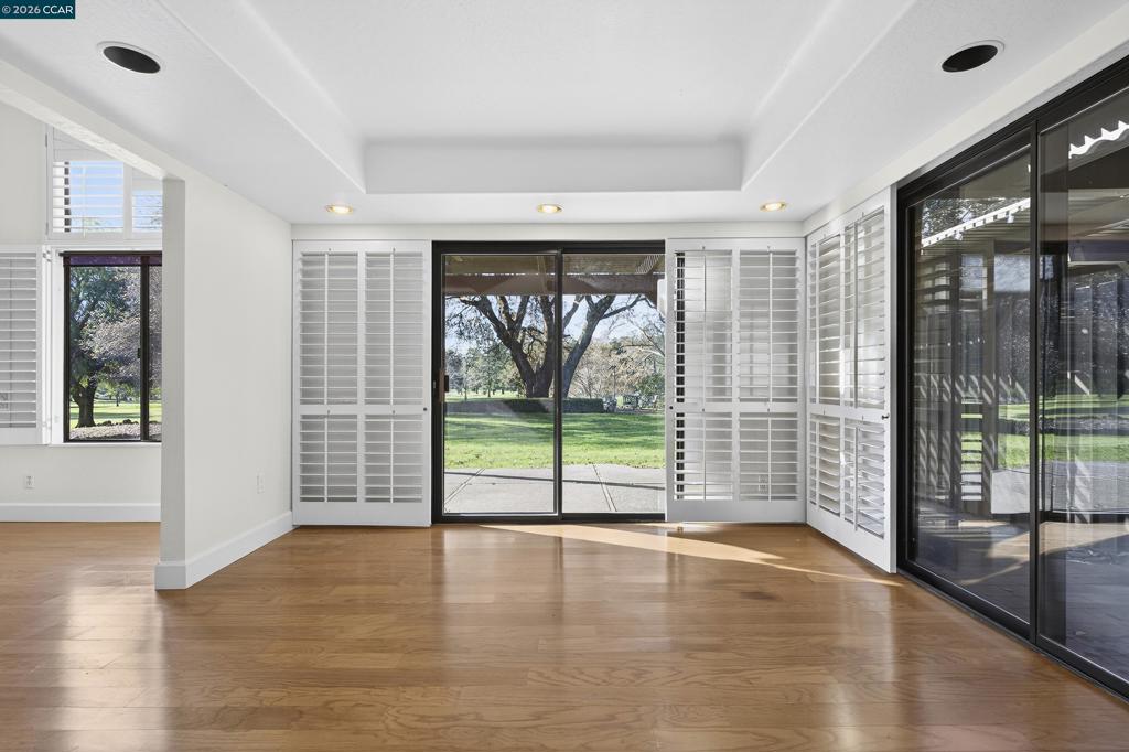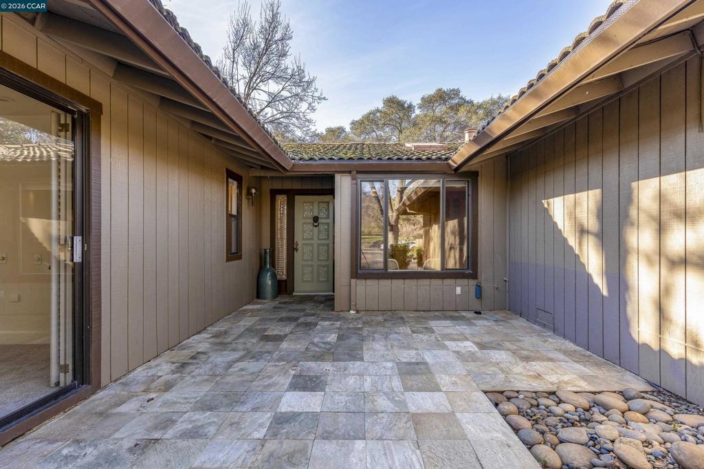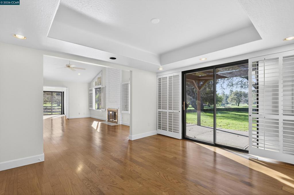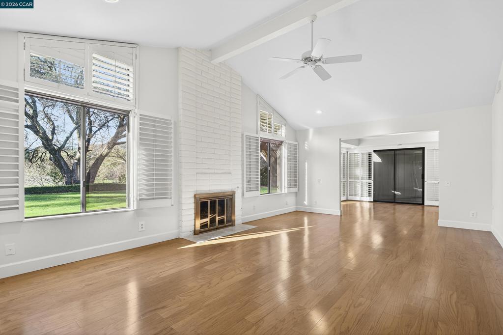 Tucked away at the back of the court in one of the most desirable locations in the complex, this unique single-story home offers rare privacy and stunning, unobstructed views directly adjacent to the 2nd hole of Green Valley Country Club. Enjoy the peaceful ambiance and soothing sounds of the nearby creek from your spacious private patio—perfect for relaxing or entertaining. This well-appointed residence features 1921 sq ft with two generously sized bedrooms, including a primary suite with an enlarged walk-in closet, and two full bathrooms. The home offers a large family room with fireplace, dining area, den/library, and a bright open eat-in kitchen. Recent updates include fresh interior paint, new carpet in the bedrooms, and gleaming hardwood floors throughout the main living areas. A truly rare opportunity to own a premier location with exceptional views and serene surroundings—don’t miss it.