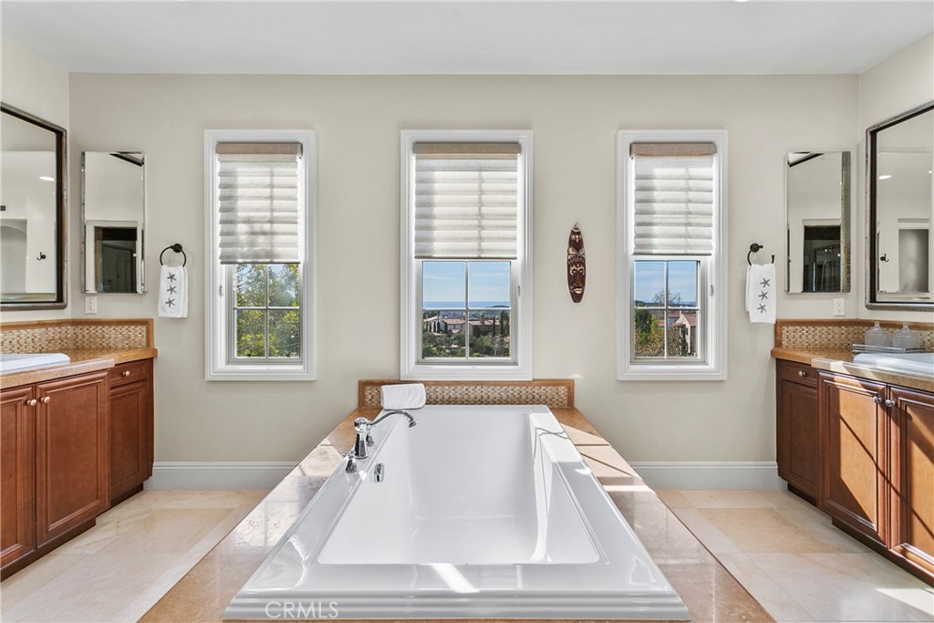 Welcome to Lucia, the most exclusive enclave in all of Talega. Set behind gates, on a quarter-acre lot, this exceptional estate offers panoramic ocean, city lights, and sunset views. A private entry courtyard with fireplace welcomes you onto the property, and provides the perfect spot for cool, coastal evenings. Across the flagstone setting, the grand entrance hall sets the stage for an elegant layout with volumes of space and natural light, and a scale that works for small gatherings or large soirees. Hardwood flooring flows throughout most of the residence, connecting elegant formal living and dining spaces, with inviting family areas designed for everyday comfort. The main level includes a separate bedroom suite, library/study, dedicated wine room, and thoughtfully designed transition spaces with classic architectural elements. Upstairs, the five-star primary suite is the ultimate retreat. Set in its own wing, the private space offers a spacious bedroom, sitting area with ocean-view balcony, spa-inspired bath with deep soaking tub and separate shower, plus an oversized walk-in closet. The upper gallery and loft area offer an excellent transition to the additional bedroom suites, and a versatile bonus room which is currently used as a home theater. This residence is designed for seamless indoor-outdoor living and the rear grounds serve as a true extension of the home. An expansive outdoor pavilion anchors the space, complete with kitchen, bar, and big-screen TV, and creates the ultimate setting for year-round gatherings, game days, and glorious ocean-view sunsets. A resort-style pool and spa with classic water features, multiple sunning and entertaining areas and stone walkways complete the outdoor environment...PLUS, an adjacent Casita offers added flexibility for guests or extended stays. Only twenty estates grace the Lucia community and opportunities like this are exceptional. This residence truly represents the best of OC coastal living and best of the Talega lifestyle