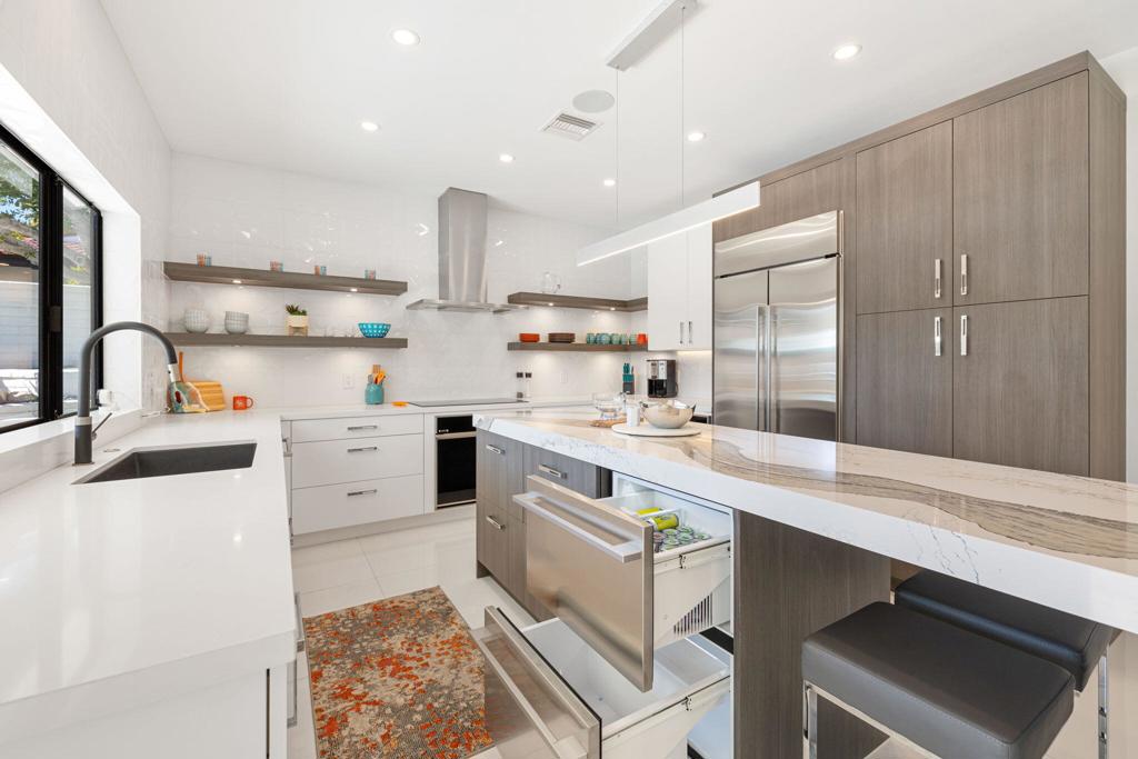 Completely reimagined custom home with million-dollar panoramic views. This exceptional 3-bedroom, 3-bath residence with a den offers approximately 2,700 square feet of thoughtfully curated living space on an expansive one-third-acre lot. Designed for both comfort and sophistication, the home features generous proportions, elevated finishes, and seamless indoor-outdoor living rarely found at this level.Nearly everything has been updated since 2021, creating a true turnkey opportunity. The interior showcases new engineered wood flooring, new tile, freshly painted interior and exterior, and all-new window treatments. Both secondary bathrooms have been completely remodeled, while the primary suite includes new windows for enhanced comfort and energy efficiency.The kitchen has been fully renovated with new cabinetry and quartz countertops and is outfitted with top-of-the-line appliances, complemented by a new washer, dryer, and water softener.Major systems and exterior improvements have also been fully addressed. The pool was completely redone, all backyard concrete was replaced, and the entire landscape was redesigned in 2021. New concrete extends throughout the property, with the entire side yard rebuilt in October 2025. Flat roofs were replaced in 2025, and the clay tile roof was professionally inspected and confirmed to be in excellent condition. The water heater and furnace are both brand new as of 2025.Additional upgrades include all-new M-Tech door hardware, a new garage door, and epoxy-coated garage floors completed in 2021.Enjoy privacy, space, and breathtaking views in a well-maintained community with an exceptionally low HOA of just $267 monthly. This is a rare opportunity to own a meticulously upgraded home that perfectly blends style, scale, and scenery.