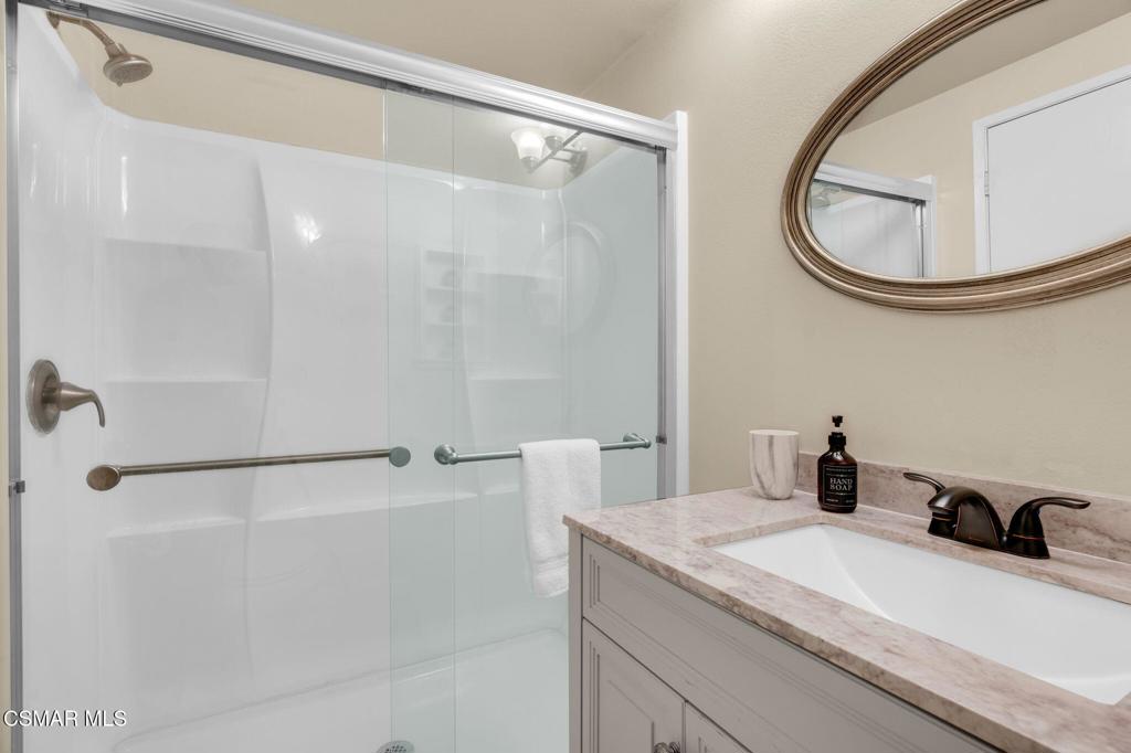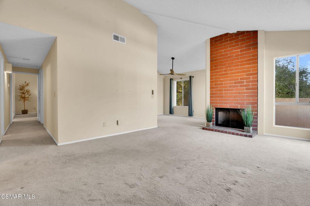 Opportunity knocks on this super cute, upper level 2 bed, 2 bath, 1048 SF condo in the 55+ community of Oaknoll Villas. Come with your reno ideas to complete this partially updated home. The living room has vaulted ceilings, a beautiful brick fireplace and glass sliders that leads to the balcony. From the living room, there is a separate dining area just off the kitchen. Down the hall, you have the secondary bedroom and bathroom. At the end of the hall, there's a spacious primary bedroom with soaring ceilings, a walk-in closet and a large window for plenty of natural light. The primary bathroom has a new shower stall and a laundry closet with new washer and dryer. The home also includes a new dishwasher (12/25), newer HVAC (2021), and newer fridge. Oaknoll Villas has wonderful amenities including pool, spa, clubhouse, gym, billiard room, card room, shuffleboard courts, yoga room & dog park. The HOA includes trash, cable/internet, complimentary plumbing service, plenty of guest parking and landscape maintenance. This active SENIOR community is all electric, has carports for parking, is centrally located and very close to nearby parks, Conejo Valley Botanical Garden, shops and restaurants, The Oaks Mall and the Hillcrest Center for the Arts. Please note, there will be no special assessments in the 2026 fiscal year.