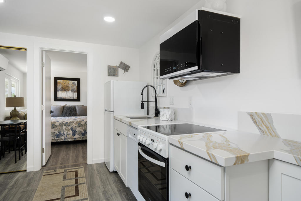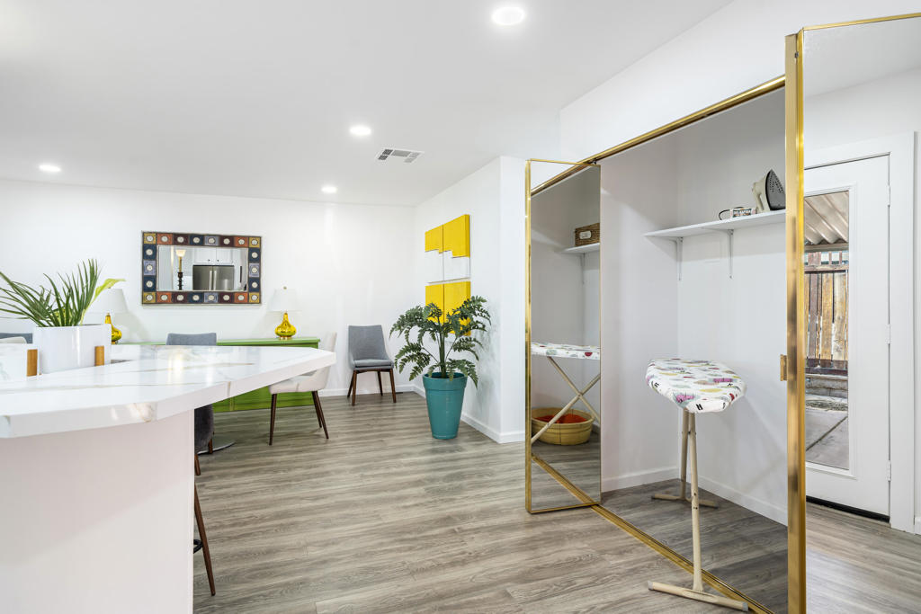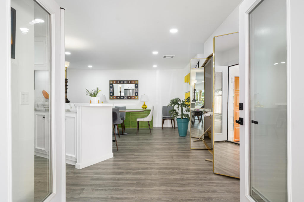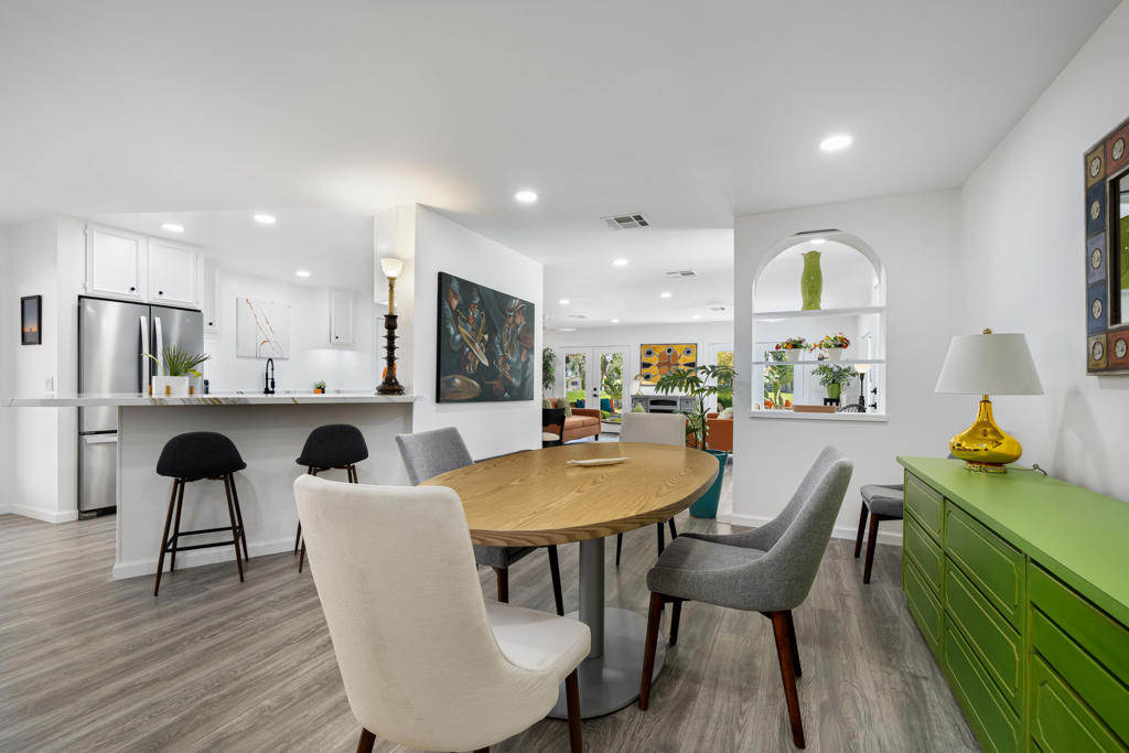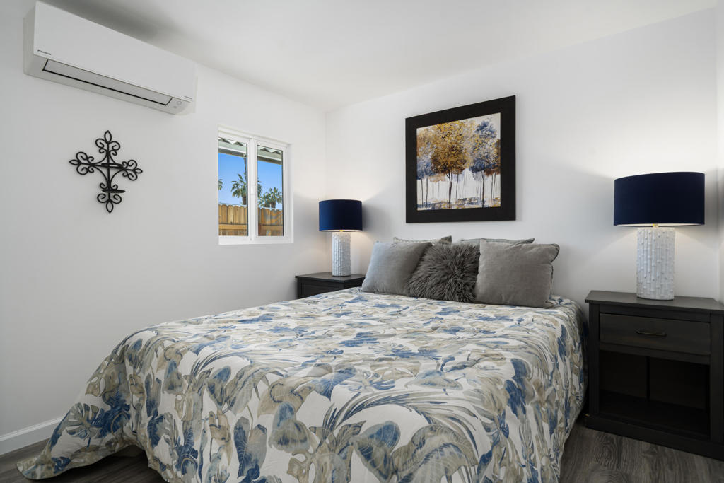 Welcome to 427 Calle Madrigal, a stunning mid-century inspired home located in the highly desirable Date Palm Country Club of Cathedral City. Offered turn-Key furnished, this beautifully updated 3-bedroom, 3-bathroom residence spans approximately 2,200 square feet and offers a rare combination of style, function, and breathtaking views of the golf course and tranquil pond. The main house features two spacious bedrooms and two fully renovated bathrooms, while the attached private casita includes one bedroom, one bathroom, its own updated kitchen, private entrance, and a separate mini-split HVAC system--perfect for guests, extended stays, or as a private rental. The casita presents a fantastic opportunity to generate additional income, helping to offset the land lease cost and increasing overall affordability.Both the main residence and casita enjoy expansive fairway and water views, and each boasts its own private covered patio for relaxing or entertaining. Inside, the home is flooded with natural light thanks to all-new windows and doors, enhancing the clean lines and modern feel throughout. The main house kitchen has been refreshed with quartz countertops and updated appliances while keeping the original cabinetry, maintaining its character and charm. The casita kitchen also features quartz counters, complemented by classic white appliances for a bright, clean look. All bathrooms throughout the property have been tastefully renovated, and the entire home is offered fully furnished with stylish, comfortable pieces, making it move-in ready. A detached garage provides additional convenience and storage.Whether you're looking for a full-time residence, seasonal escape, or an income-producing opportunity, 427 Calle Madrigal offers it all with timeless mid-century flair, modern updates, and one of the best views in the community.