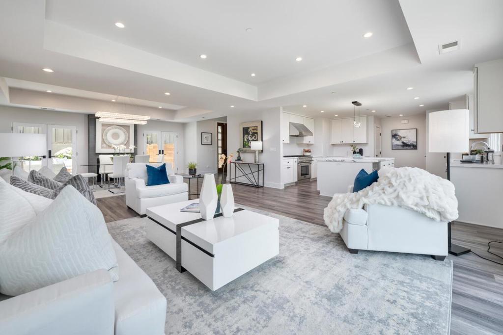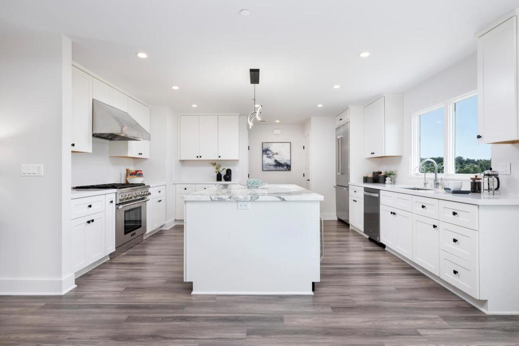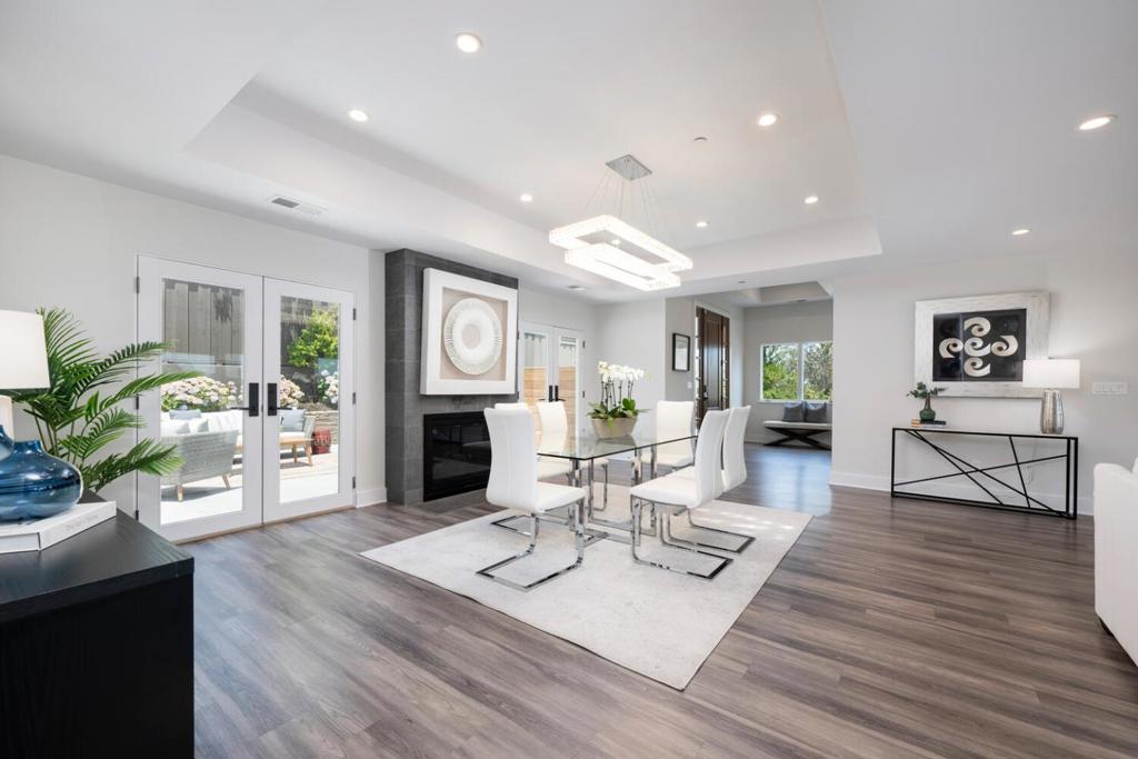 Set on a generous and private 0.69-acre lot with breathtaking views, this lovely updated 4-bedroom, 2.5-bath home offers the perfect blend of modern comfort and timeless elegance. Designed for today's lifestyle, it features light-filled interior spaces and a seamless flow ideal for entertaining. Highlights include chic flooring, tray ceilings, recessed lighting, and expansive picture windows framing the lush, natural surroundings. The open-concept dining area, complete with a fireplace, is accented by French doors that open to a sizable patio and level lawn, perfect for indoor-outdoor living. The chef's kitchen boasts a center island and top-of-the-line appliances, flowing effortlessly into a spacious great room with direct access to a large deck showcasing spectacular views. 3 bedrooms and 2.5 baths are conveniently located on the main level, including a luxurious primary suite with a large walk-in closet and a spa-inspired bath. A 4th bedroom is located on the lower level, offering flexibility for guests, a home office, or additional living space. A long, sweeping driveway bordered by manicured boxwood hedges, vibrant rose bushes, and elegant Japanese maples leads to a 2-car garage with additional storage, completing the appeal of this exceptional, turnkey property.