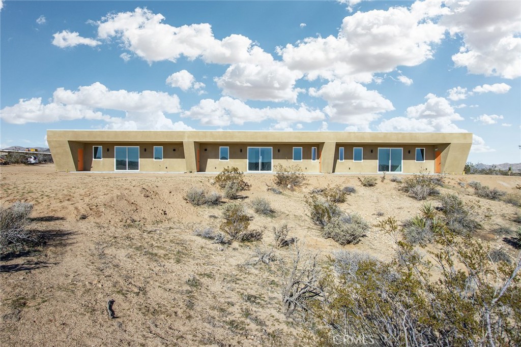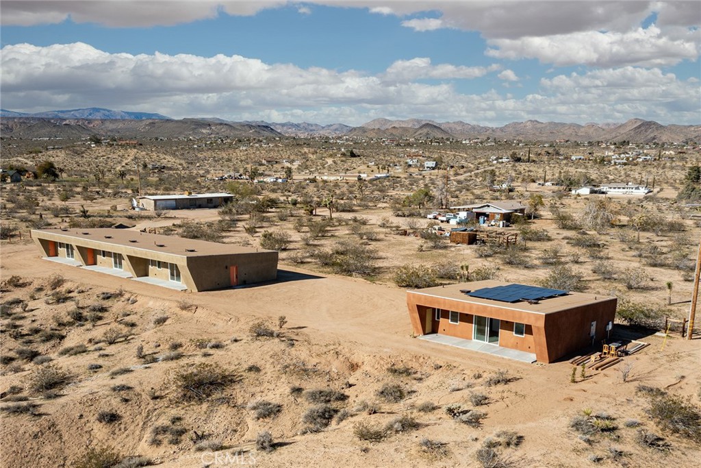 PIPES CANYON COMPOUND: Extraordinary New Construction 12-BEDROOM/8-BATHROOM complex, comprised of a SFR, ADU & Junior ADU. However, one could utilize the property in numerous ways, whether for extended family, live-in social groups or as a multiple rental investment property. Or purchase as a Tenancy in Common (TIC), in which multiple buyers purchase the property together, with each owning a percentage that they can then independently manage or sell their share of the property, or pass it on to heirs as desired (buyers to check/confirm TIC laws). Next Level Futuristic structures built overlooking vast wilderness in the highly sought after east Flamingo Heights neighborhood. Situated above the ancient Pipes Canyon Wash, providing countless miles of protected heavenly hiking below. Sand to Snow National Monument is minutes to the west. For hungry hikers, noted gourmet restaurant La Copine is nearby. For an Echo Park-like ambiance visit the neighborhood Giant Rock Meeting Room for socializing & gourmet pizza, or chill with a sound bath at The Integratron. Flamingo Heights and Landers have truly come of age as a social nexus in less than a decade. One no longer needs to drive to Joshua Tree to eat or socialize with nearby social settings, extensive wilderness hiking, overlanding/off-roading and even world-famous Pappy & Harriet's Pioneertown Palace, which has featured artists like Led Zep’s Robert Plant and The Beatles Paul McCartney, a short drive away. This new-construction opportunity is being offered at an INCREDIBLE $250 PER SQUARE FOOT – a price lower than most contractors can or are willing to build; in fact, a lower price per square foot than much of the old stock inventory currently on the market for sale. This is a literal once-in-a-lifetime opportunity for the right buyer. Whether as part of a social club setting or an extensive living arrangement, this property offers a multitude of options. BEST VALUE, BEST LOCATION (Legendary Tahoe Lane, overlooking Pipes Wash) & BEST BUY currently in Joshua Tree/Yucca Valley area.