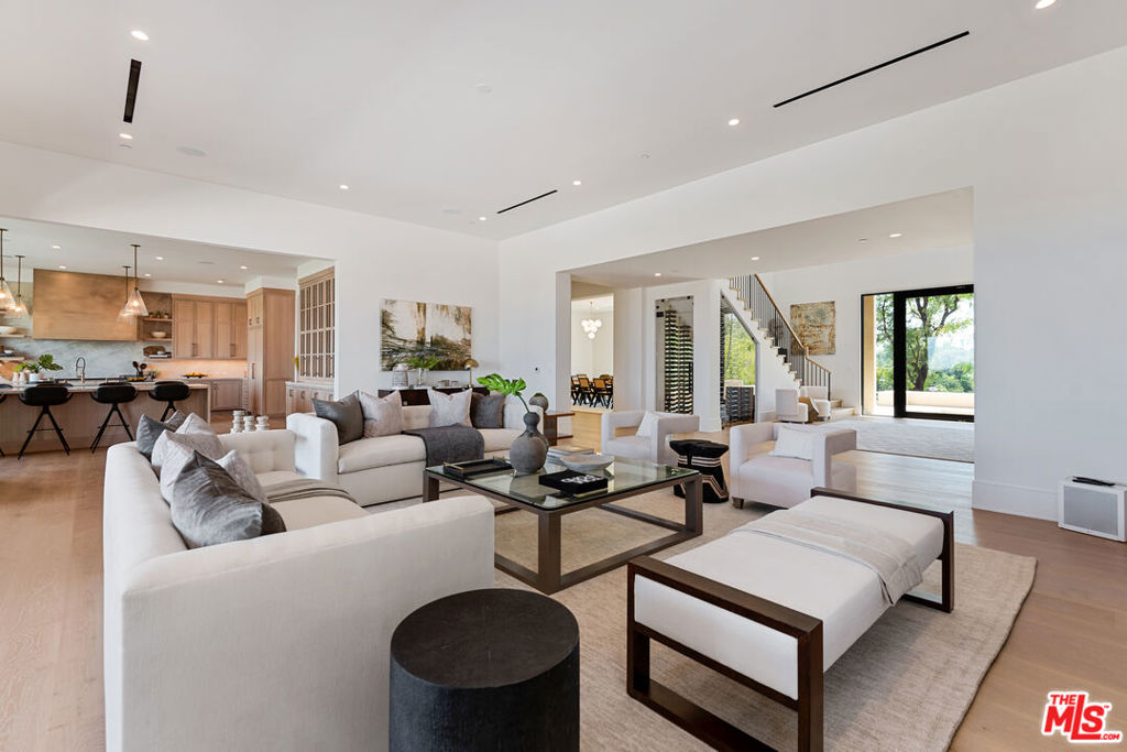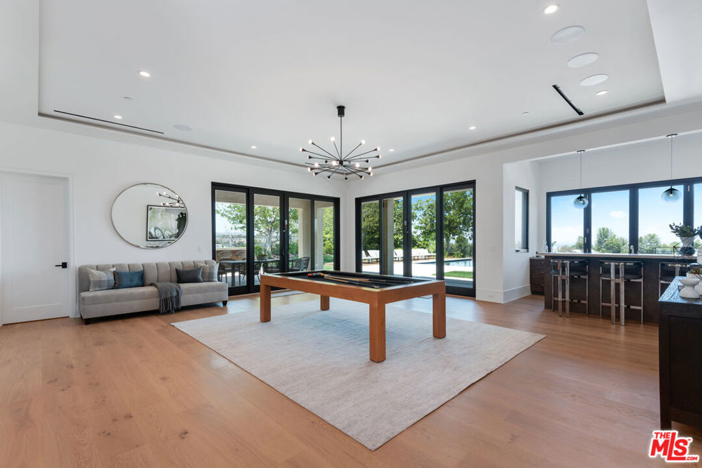 Privately located at the end of a cul-de-sac in the prestigious guard gated community of Hidden Hills sits this impressive 10,401 square foot estate on over an acre of land. Drive through the gates and up a long private driveway to the motor court and 4-car garage. The home provides explosive views from every room in the house of the city below. Enjoy the peace and tranquility of the lush backyard with a covered patio with heaters, outdoor kitchen, firepit, spa, infinity edge pool, meditation deck and sports court. Natural light saturates the home through the various windows and sliding glass doors that seamlessly marry the indoors with the outdoors for that ultimate in California lifestyle. Enjoy movie night in the home theater or entertain in your game room. Display your fine wines from the glass-enclosed temperature-controlled wine closet. The chef's kitchen has a walk-in pantry, dual islands and plenty of cabinetry. All 5 guest bedrooms are en-suite with walk-in closets. The primary is truly a retreat with high ceilings and sliding glass doors that lead to a private balcony that overlooks the city light views. The primary bathroom has a soaking tub, two wash closets, dual vanities, and an oversized shower. The dual primary walk-in closets have been built out with custom shelving and drawers. The other amenities of the home include smart home technology with surround sound, wide-plank hardwood floors and gorgeous chandeliers and impeccable furniture.