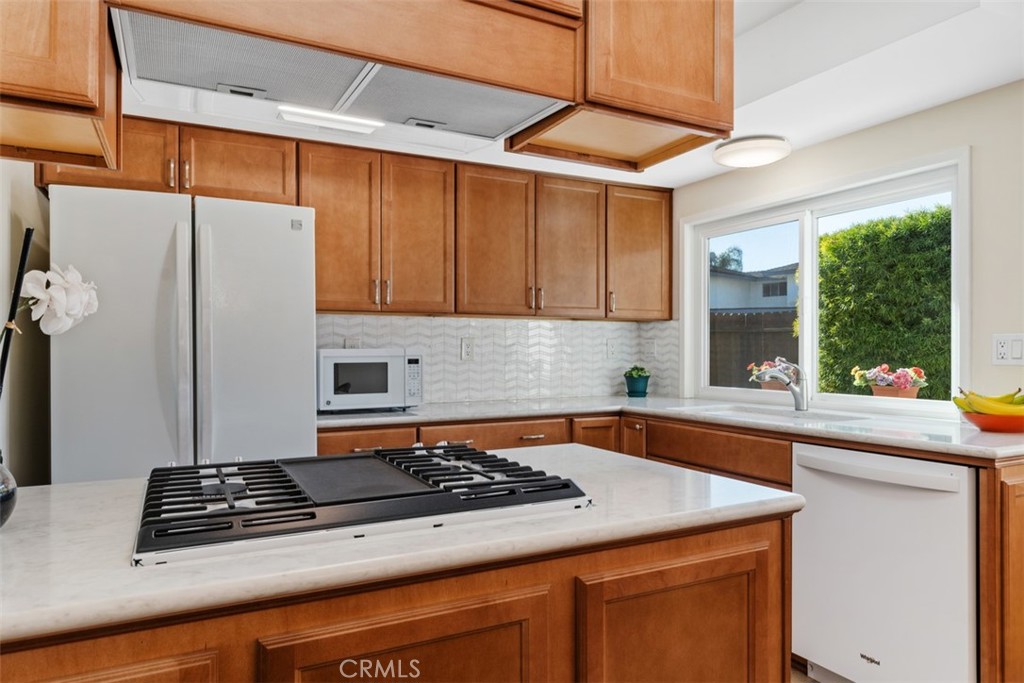 Nestled in the cozy community of Cape Huntington, this 3bd, 2ba townhome is just 2.5 miles from the famed beaches of Huntington Beach. Step inside this darling home and you are greeted with a wonderful airy and open floorplan with an abundance of natural light. The remodeled kitchen and dining area flow effortlessly from the family room area. There is a main floor bedroom, that could also serve as a great office space. Upstaters there is the primary bedroom and additional bedroom. The spacious primary bedroom has it's own vanity counter and plenty of closet place. The primary bedroom offers a shower and separate bathtub. This charming home is an end unit that has a large outside patio along with a laundry room. The nearby private association pool is so inviting, you'll be tempted to take a dip. This is an amazing opportunity to own a home with an interior location in the community of Cape Huntington. They very rarely come to market.