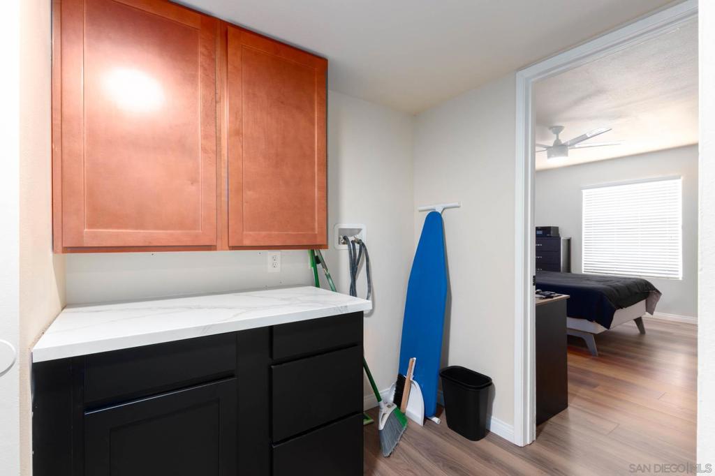 Nicely remodeled ground floor end unit is ready for new owners. (Crown moulding for kitchen cabinets on order.) This beautiful light, bright unit offers 2 generously sized bedrooms each adorning a walk-in closet. New flooring along with black and cognac cabinetry throughout gives this home a cohesive feel. There are lighted ceiling fans in each bedroom and living room. Each of the 2 bathrooms have beautiful, lighted, dimmable mirrors and new vanities. In-unit stackable washer/dryer. Assigned parking in the rear of the building as well as an additional storage locker. Come and see to appreciate.