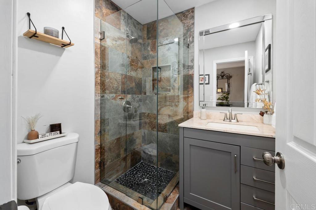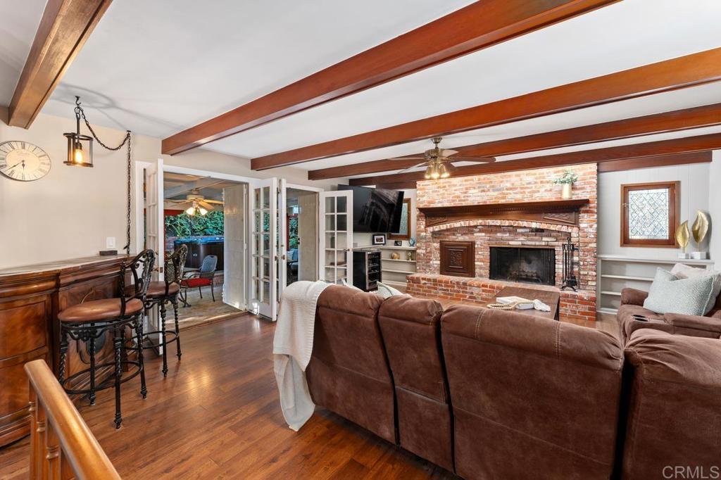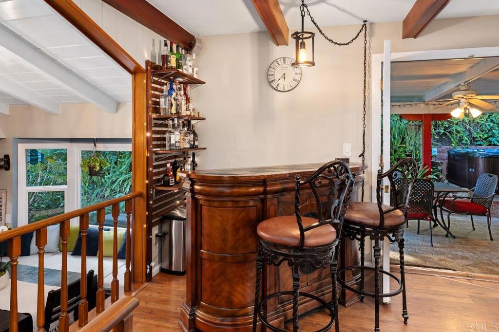 Set on a serene hillside near La Mesa Village in one of the area’s most desirable neighborhoods, this view home offers a comfortable and private setting with elevated outlooks. Surrounded by mature plants and trees, the property features 4 bedrooms and 3 full baths (one not permitted). The floor plan lives primarily on one level, with just a few steps between the family room and kitchen. French doors from the family room open to the backyard, creating an easy indoor-outdoor flow, while French doors from the primary bedroom provide direct access outside. A dedicated office off the living room offers a quiet work-from-home space. Nearly all windows have been upgraded to dual-pane (all except two). Additional features include owned solar, roof exhaust fans, and a whole-house water system with reverse osmosis drinking water and soft water. A bonus room off the garage (approx. 315 sq. ft., unpermitted) offers flexible use as a gym, office, or studio. The main living areas are accessed from the garage by a single set of stairs, and once inside, the home functions much like a single-level residence, with just a few interior steps. The backyard includes a covered porch and spa, framed by mature landscaping, while the front of the house captures views of Mt Helix. The elevated hillside location provides privacy and a sense of seclusion. Two-car garage. Walking distance to La Mesa Village restaurants, coffee shops, boutiques, pubs, and community events, with nearby access to an elementary school. A rare opportunity to own a private hillside view home with versatile living space in one of La Mesa’s most sought-after neighborhoods.