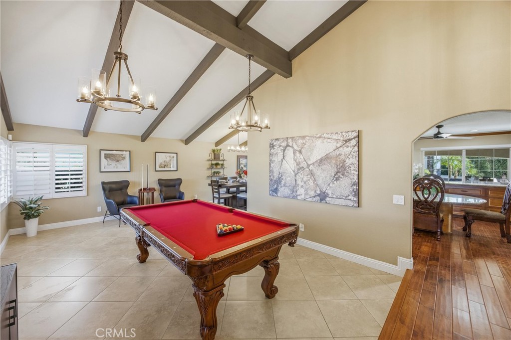 Exceptional South Redlands opportunity featuring a beautifully maintained 2,520 square foot main home plus a brand-new 1,948.5 square foot detached pool house on a 19,362 square foot lot. This property offers a total of 4,468.5 square feet, 5 bedrooms, 4.5 bathrooms, and resort-style amenities, including two pools and 34 paid solar panels. The main house features hardwood floors on both levels, vaulted ceilings with exposed wood beams, and an open floor plan that connects the living spaces. The gourmet kitchen features wood cabinetry, granite countertops, a center island with a gas cooktop, and black appliances flowing into the family room. Two fireplaces add warmth and ambiance. The upstairs primary suite includes a large walk-in closet and a private deck overlooking the pools. Additional features include plantation shutters throughout, a recreation room with vaulted ceilings, a dedicated laundry room, and an attached 3-car garage with epoxy flooring. Energy-efficient upgrades include 34 paid solar panels, a newer electrical panel, a whole-house fan, a reverse-osmosis system, a tankless water heater, and a recently serviced AC unit. The resort-style backyard features two saltwater pools with a Pebble Tec finish: a heated pool with an integrated spa and a lap pool for fitness, both controlled remotely via the Pentair Screen Logic app. The covered outdoor kitchen includes a built-in BBQ, bar seating with a stone facade, and a wine refrigerator. Mature palm trees and tropical landscaping complete the outdoor oasis. The detached pool house, completed in 2025 and less than one year old, offers 1,948.5 square feet of modern luxury with 2 bedrooms (no closets) and 2 bathrooms. This contemporary residence is fully furnished with designer pieces and features an open-concept living area with floor-to-ceiling windows, a modern kitchen with white cabinetry and quartz countertops, two fireplaces, and automated window shades. Both bathrooms feature steam showers, radiant-heated floors, and heated toilets. The private second-story balcony overlooks the pool area. Integrated security cameras and smart home features are included throughout. Located in desirable South Redlands, minutes from historic downtown, the University of Redlands, top-rated schools, shopping, and dining. Easy freeway access. Perfect for multi-generational families, investors seeking rental income, or luxury lifestyle seekers. Truly turnkey with furniture included in the pool house.