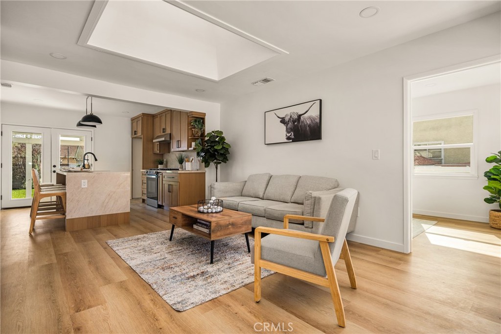 Welcome to 4454 Canehill, located in Lakewood. This home has been remodeled, and the layout has been redesigned to create an inviting primary suite. The living room and kitchen are open concept, and a favorite part of this space is the vast skylight. The kitchen has French doors that open to the yard, creating the perfect indoor-outdoor dining space to enjoy Southern California weather all year long. One side of the home has two bedrooms, a full bathroom, and the laundry space. On the opposite side of the house is the primary suite, which features a walk-in closet. The backyard is spacious with grass, an outdoor seating area, a long driveway, and a finished two-car garage. The remodel includes exterior paint, landscaping, interior paint, flooring, lighting, an electric fireplace, a laundry inside, a remodeled kitchen, a primary suite, a spacious yard, and a front porch… The list goes on, but it's not home till there is you. See you soon at 4454 Canehill!