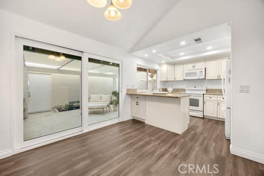 Welcome to this beautiful Rancho Dominguez Community - a three bedroom, two bath townhome offers a great floor plan, all on one level, vaulted ceilings with many upgrades, including the kitchen cabinets, granite counter tops, complete with a dining area. The Bathrooms have been upgraded as well with travertine tile. A cozy fireplace welcomes you and is a great focal point in the living room for those cooler winter evenings. A private covered patio with vinyl fencing awaits you for dining alfresco or gardening during the warm summer days. The bedrooms have been upgraded with custom-designed closets and there is plenty of storage in the garage as well with storage cabinets. Lovely green belts mature trees, landscaping, hiking trails surround this neighborhood. Enjoy the community association pool, tennis courts, or the playground for your little ones. Located near the award winning Travis Ranch Elementary/Middle School, shopping, and freeway access. Come see all the amenities, you wont want to leave.