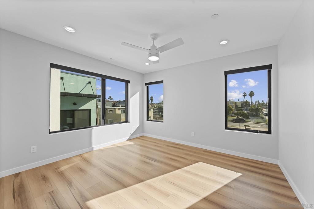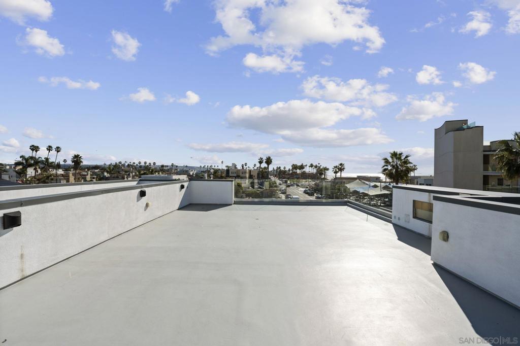 This new construction is zoned for vacation rentals and offers panoramic ocean views—views from every room. The home includes a primary suite with view decks and walk-in closets, an 1290Sqft Extra Large rooftop deck featuring an outdoor kitchen and fireplace. Solar panels are included. Appliances are all new (Thermador), and the interiors make use of high-quality materials. The property features 2 bedrooms, 2 bathrooms. The open floor plan connects the dining and living rooms, while cantina-style doors open to the front yard, extending the living space. The kitchen is equipped with a large waterfall quartz island, custom European contemporary style cabinetry, quartz countertops, and a spacious pantry. Finishes and fixtures are high-end, and tilework is detailed. Professionally designed spaces. The rooftop deck contains Coyote appliances and a fireplace. There are views of the ocean, San Diego Bay, and the estuary. Roof Top Deck is included in square footage. Unit includes stubout for future charging Station. And storage closet for surf boards and bikes.
