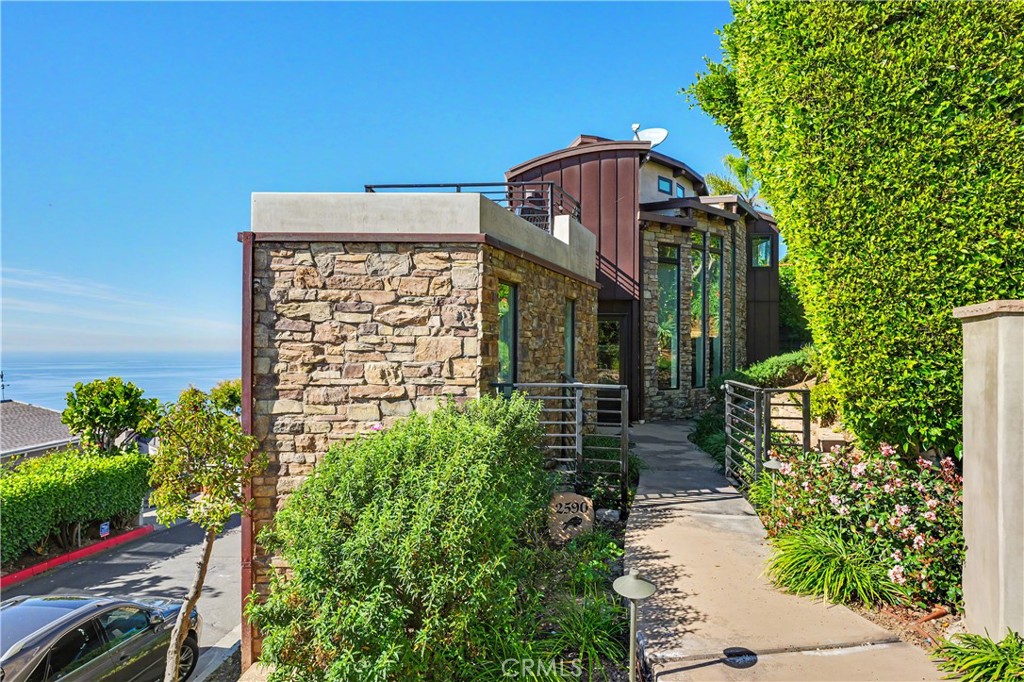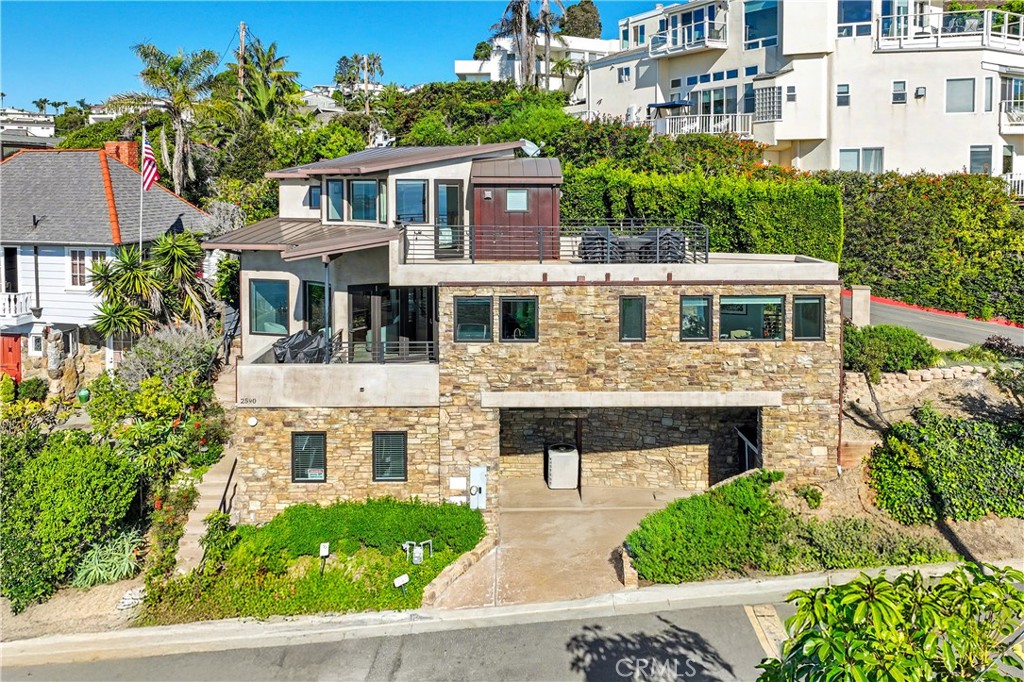 A true top-of-the-world retreat, this exceptional two-bedroom residence with an additional office/den offers breathtaking panoramic ocean views from every room. Sweeping coastal vistas stretch as far as the eye can see, creating a rare and unforgettable living experience in Laguna Beach. Completely rebuilt from the ground up in 2019, the home features all-new plumbing, electrical systems, an aluminum 50 year roof, reverse-osmosis water filtration, AC, tankless water heater etc. Just like moving into a brand new home. Thoughtfully reimagined with a contemporary design, the residence showcases soaring windows that frame dramatic coastline views, including San Clemente and Catalina Islands. Abundant natural light fills the space, while a cozy fireplace sets the perfect ambiance for relaxing evenings accompanied by the sound of crashing waves. Panoramic ocean views extend to the patio and outdoor deck, ideal for entertaining or enjoying quiet moments of relaxation. The kitchen is equipped with stainless steel appliances, and the updated bathrooms complement the home’s modern aesthetic. A rare offering in the area, the property includes an attached single-car garage and ample street parking. The garage is currently configured as a third bedroom with heating and air conditioning, providing flexible living options, along with additional driveway parking. Enjoy spectacular coastal fireworks visible from Catalina Island to Malibu. Ideally located near pristine beaches, scenic hiking trails, and Laguna Beach’s renowned dining and art scene, this home truly captures the essence of elevated coastal living.