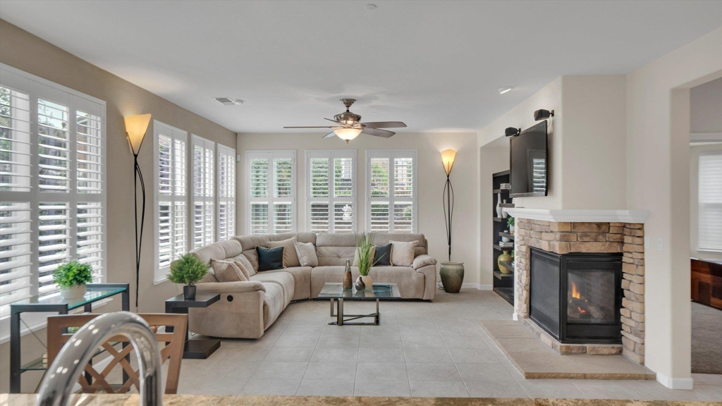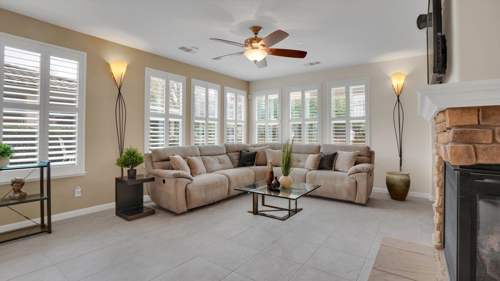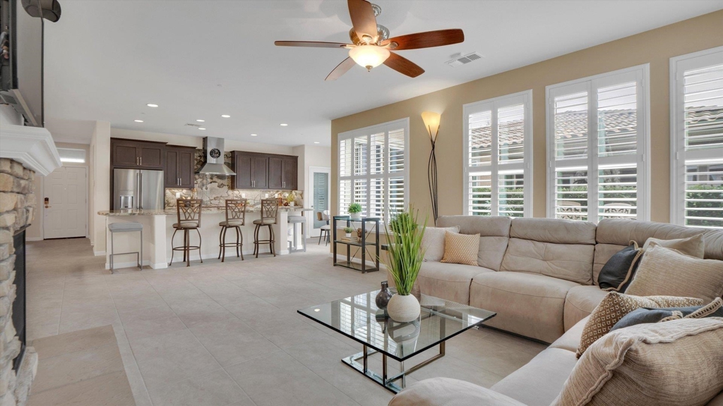 Experience the best of the Trilogy resort lifestyle in a beautifully upgraded home that is truly ready to enjoy. This turn-key home has been thoughtfully upgraded with a fully remodeled kitchen, showcasing HIGHLY upgraded finishes and porcelain tile in all main living areas. Brazilian granite countertops, custom cabinets with inlays, top-of-the-line appliances, Ruvati workstation and pantry all compliment this incredibly refreshed home. The interior paint feels light and airy throughout. Designer blinds and shutters add style, personality, and functionality - all windows have been replaced in the home. A gas fireplace creates a warm, inviting living space ideal for comfortable living on cold winter days. There is a perfect niche for your furniture or treasures next to the fireplace. Step outside to a generously sized, private lot—a rare find—where you can unwind in your own hot tub and enjoy peaceful outdoor living with privacy. Meticulously maintained and move-in ready, this home offers the perfect blend of sophistication, comfort and style. Enjoy all the Trilogy amenities, clubhouses, vibrant social calendar, pools, restaurant, cafe, spa, gym, courts and golf course.