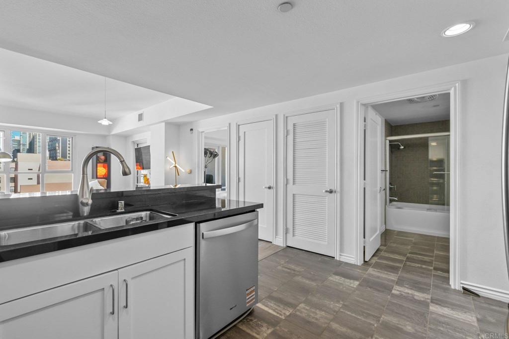 Seller will entertain offers between $649,000 and $665,000. Beautifully refreshed 2-bedroom, 2-bath condo in the heart of downtown San Diego. This light-filled residence features an open layout with thoughtful updates throughout, creating a clean, modern, and truly move-in-ready feel. Just bring your toothbrush as nearly all the high-end furnishings are negotiable. The refreshed interior includes black quartz countertops, new luxury vinyl flooring, new dishwasher, comfortable living spaces, well-proportioned bedrooms, and updated finishes that elevate the home without overstatement. Enjoy the airy patio with northwest city views. And don’t forget, there are two, side-by-side parking spaces! FHA and VA Approved! Nexus is a well-maintained building with rooftop deck, weight room, bike storage room, and a clean, updated look. Located just four blocks from Petco Park and steps from restaurants, bars, and downtown attractions. Ideal as a primary residence, second home, or investment opportunity in one of San Diego’s most dynamic neighborhoods.