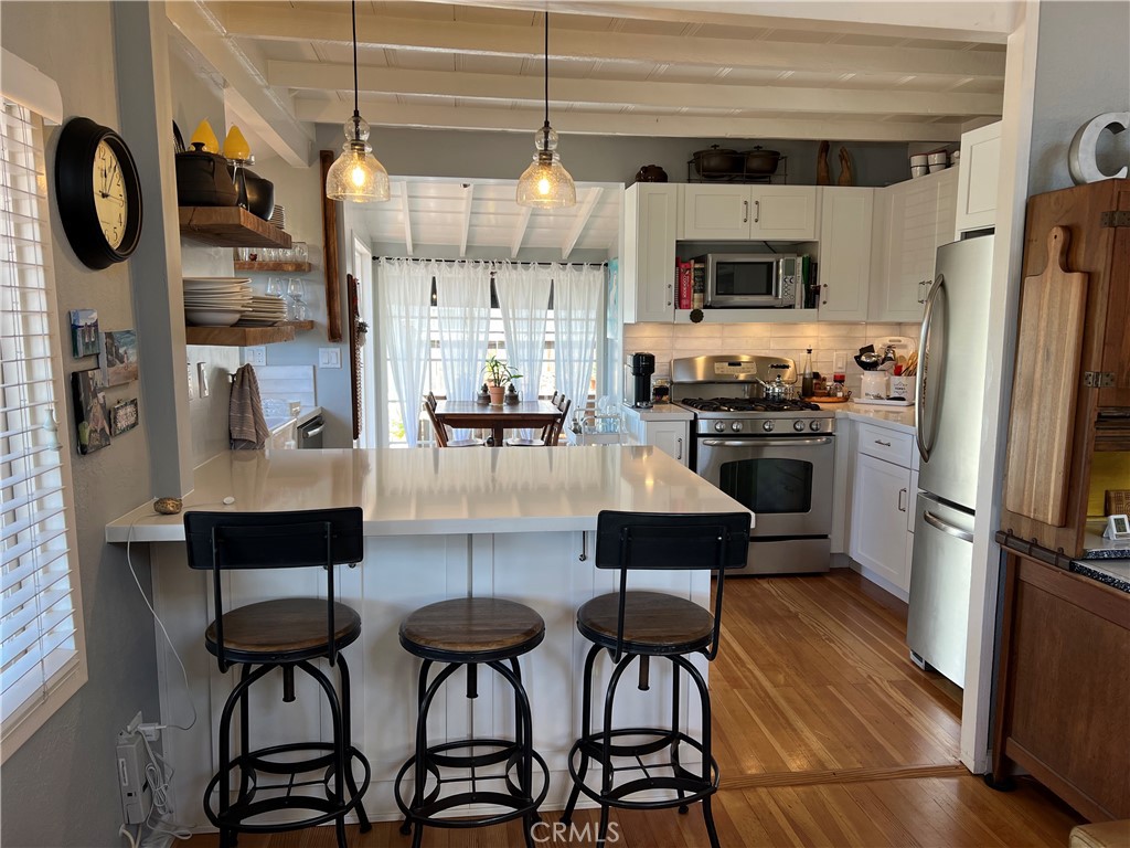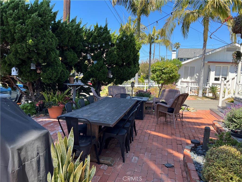 FABULOUS LOCATION! ADORABLE fully furnished Beach Cottage right in the heart of the village, just 3 blocks to the sand! This light and bright home features hardwood floors, a tastefully updated kitchen that opens to a comfortable living room with big screen TV, and French doors that open to the garden and brick patio. Enjoy a gorgeous day at the beach then come home and settle in on the cozy front porch with a glass of lemonade and watch as the day nods to night. Take advantage of ocean breezes and Summer outdoor living with a large entertainment patio with BBQ and country table that seats eight, and chairs around a fire pit for cool beachy evenings. The home sleeps four, with a queen bed in primary bedroom and a twin daybed and trundle in the second bedroom. Home is fully stocked with cookware, dinnerware and all the home essentials. There is a large driveway with two parking spaces. (The garage is used by owners and not available for use). This is one of the most charming beach cottages in The Village, only blocks to the beach, restaurants and shops. This is the Quintessential Laguna Beach retreat! AVAILABLE ONLY JULY 1 - AUGUST 31