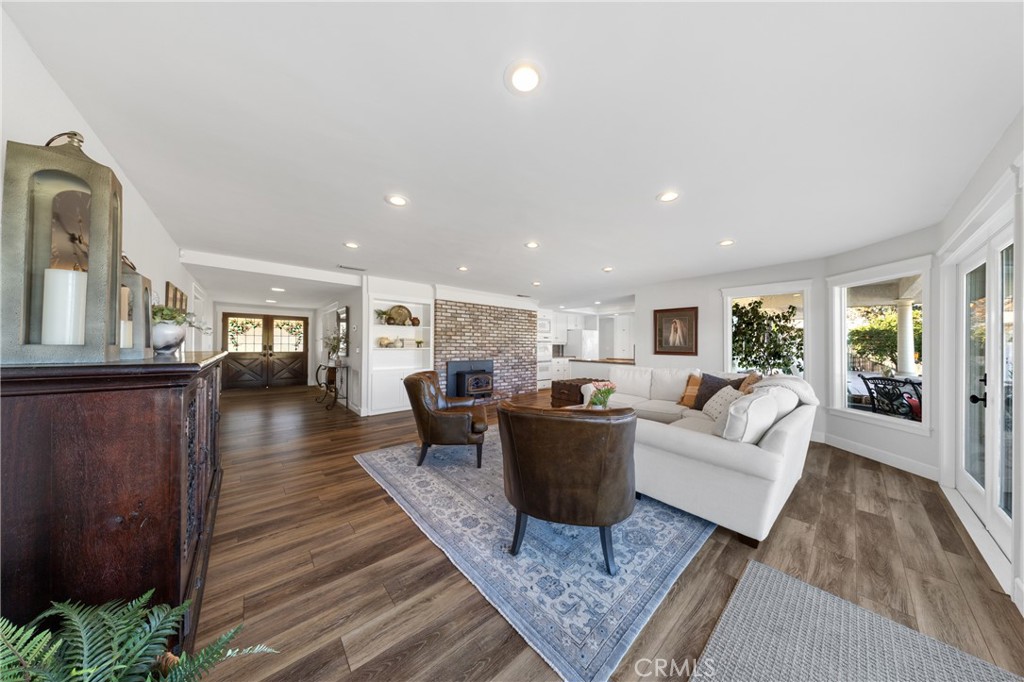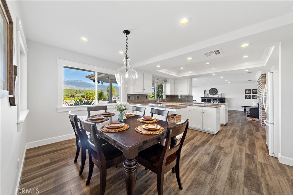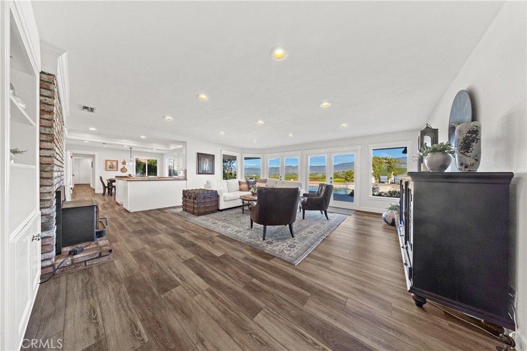 Welcome to 43840 Citrus View Drive Hemet California, an exceptional luxury-leaning estate offering space, privacy, and breathtaking views overlooking the Citrus Ranches. Situated on a sprawling 32,234 square foot lot, this 4-bedroom, 3-bath residence spans 4,099 square feet and is located within the Hemet School District, blending refined living with a serene, country setting. The home is thoughtfully designed for elevated everyday living and memorable entertainment. A formal living room and a separate family room, each featuring its own wood-burning fireplace, provide warm, inviting spaces to gather and unwind. A dedicated dining room offers an elegant setting for hosting, while the kitchen is equipped with dual ovens, under-cabinet lighting, and a dishwasher, supporting both casual meals and large-scale entertainment with ease. A permitted addition expands the family room, enhancing the home’s flow and versatility. Additional interior highlights include a built-in desk in the office, extensive hallway storage, newer flooring installed approximately five years ago, two water heaters, and a hall bathroom with a cast iron tub. The A/C units were also replaced approximately five years ago, and the home is equipped with a security system and paid-off solar. Outdoors, the property truly shines. A Pebble Tech swimming pool anchors the backyard, surrounded by mature fruit trees including lemon, lime, mandarin, orange varieties, and Cara Cara, creating a picturesque setting ideal for hosting gatherings and special occasions. The expansive lot, scenic views, and tranquil environment present a rare opportunity for buyers seeking a luxury retreat with potential for private events or future venue use, subject to buyer verification and local regulations. Horse-friendly zoning further enhances the property’s appeal. Additional features include a recently replaced fence, a permitted garage conversion with windows, laundry room, and storage, a game room with its own mini-split system, and a three-car tandem garage with attic access. Country wood shutters accent the front of the home, completing its timeless curb appeal. Conveniently located just minutes from Mt. San Jacinto, Idyllwild-Pine Cove, Alessandro Trail, and Hemet Lake, this property offers a refined lifestyle surrounded by natural beauty, outdoor recreation, and wide-open space. A rare opportunity to own a distinctive estate with both luxury and lifestyle potential.
