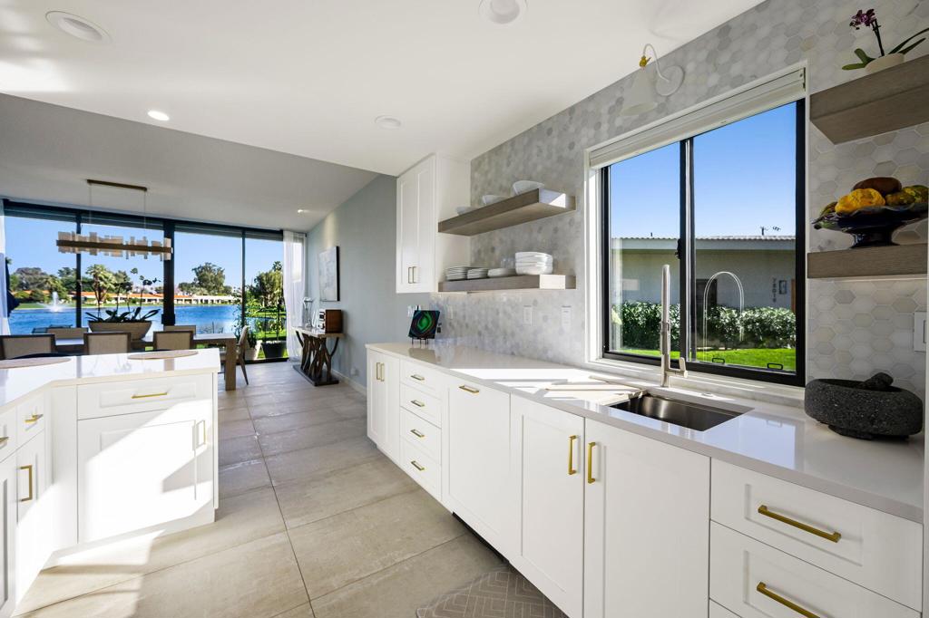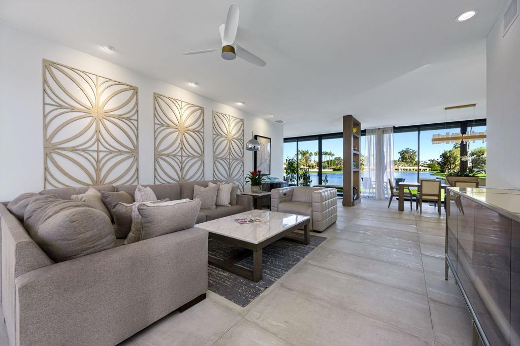 Luxurious lake front condo, nestled in the prestigious Lago La Quinta neighbhood at La Quinta Country Club, home of the PGA Tour AMEX tournament! Remodeled to perfection with attention to every detail and a modern vibe that brings a sense of calm. Endless views paint an ever changing backdrop to your living experience here in Lago. Luminous and light living area and dining room, which flow gracefully into the media room with custom bar. Two large primary suites; one with an added sleeping space with bunk beds for kids or grandkids. Chefs Kitchen with Bosch stainless steel appliance package. Quartz countertops in kitchen, bar area, and all the bathrooms.Beautiful floor to ceiling Fleetwood sliders & windows. New oversized tile flooring, new tile backsplash in kitchen and showers. New exterior custom BBQ includes Alfresco Grill, 2 Burners, True beverage center, sink and new granite. Located in the heart of La Quinta, close to the La Quinta Resort, and Old Town La Quinta, shopping, dining, golf, tennis, and hiking. Many more upgrades, list available upon request. Call or text for a private tour. Buyer to verify all information and dimensions.