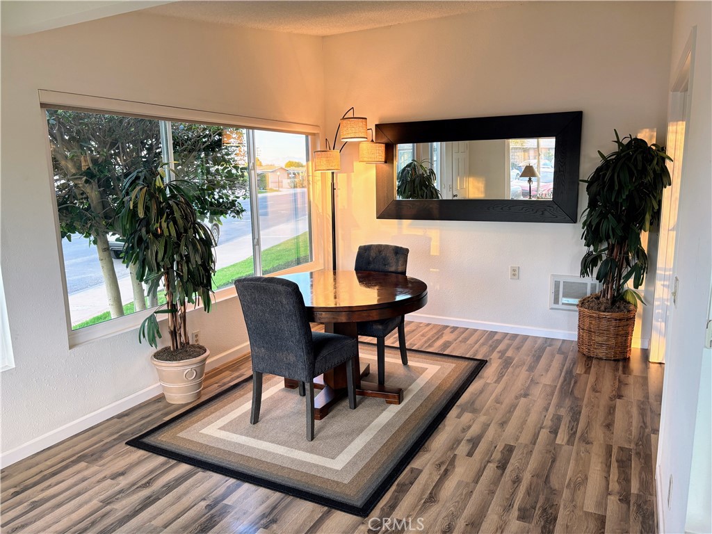 This is a fantastic move in ready, partially expanded, two bedroom one bath corner unit in Mutual 5. It has the best of all worlds - greenbelt in front for privacy plus drive-up on the side so you can easily unload groceries. In fact there is a side door allowing direct access to the street side of the unit. It has a perfect location right in the middle of Leisure World for easy access to all amenities and well away from the freeway and the power plant. The unit boasts dual pane windows, two heat pumps, and beautiful laminate throughout. The kitchen has a built in microwave and dishwasher as well as a newer countertop. The bathroom shower has upgraded glass and there is a WASHER/DRYER! The patio out front is perfect for that morning coffee or evening wine with friends. There is a lockable storage room on the patio. If you are looking for a move in ready corner unit in a great location at a reasonable price - this is it! Carport located at Bldg 71, Space 31.