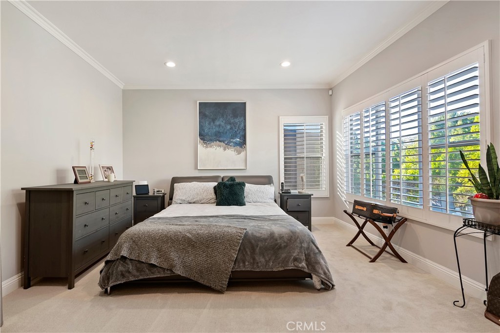 Located on a quiet cul-de-sac in the highly sought-after Monte Vista neighborhood, this turnkey 5-bedroom, 4-bathroom home offers an ideal blend of comfort, functionality, and thoughtful upgrades. The home features high ceilings, custom cabinetry, wood flooring, plantation shutters, and three fireplaces. The spacious primary suite enjoys mountain views and includes crown molding, dual closets, a large walk-in closet, and an oversized en-suite bathroom. The formal living areas and family room feature newer wood floors, while the kitchen offers a well-proportioned center island and a customized walk-in pantry, ideal for everyday living and entertaining. The backyard is designed for both relaxation and recreation, featuring a swimming pool and spa, putting green, multiple lawn areas, a fountain, and a covered patio for outdoor dining and gatherings. Energy-efficient improvements include solar panels, solar screens, a newer roof (2020) with roof risers, computer-designed HVAC ducting, and a variable-speed pool pump. Conveniently located near award-winning schools and within one of the area’s most desirable neighborhoods. A rare opportunity to own a move-in-ready home with exceptional indoor and outdoor living spaces.