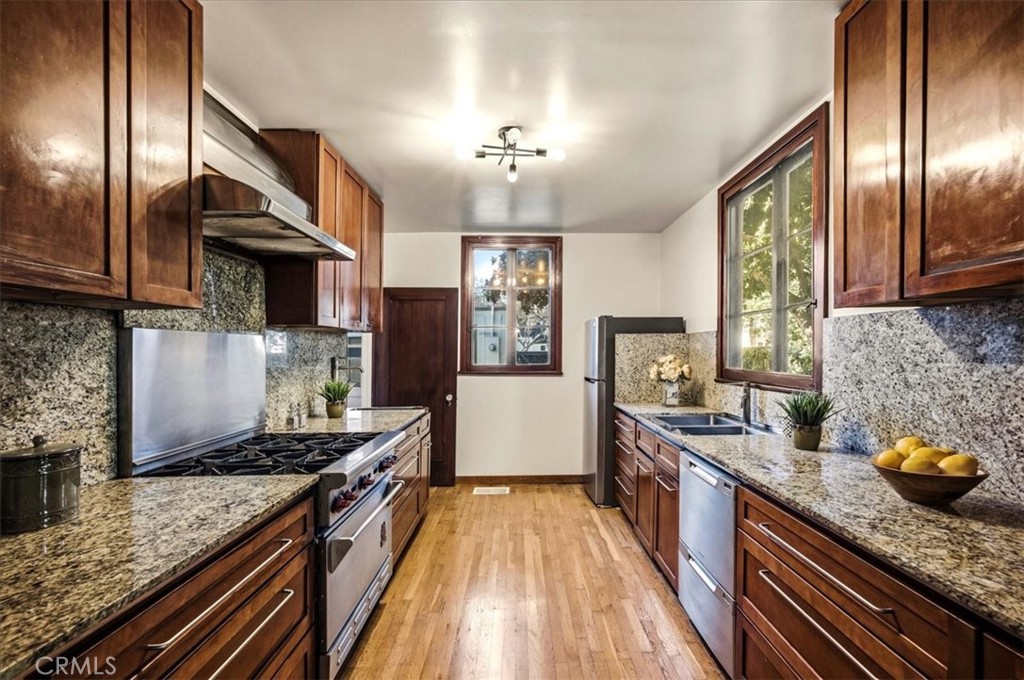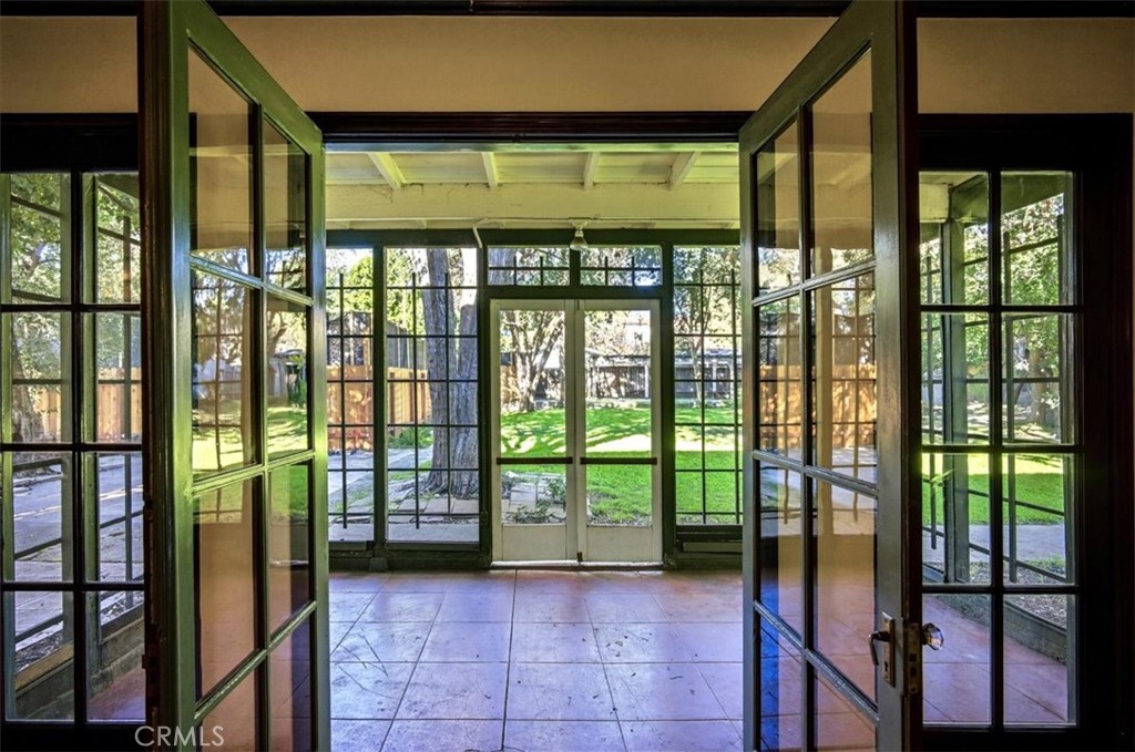 The Adair House is a distinguished Spanish Colonial Revival residence, rich in history and timeless architectural character. This two-level home showcases exquisite built-in tiles at walls, recessed entry door. charming Juliet balconies, and ornate iron scrollwork adorning the lower windows. Inside, original wood floors, picture-rail molding throughout, and beautifully preserved wood doors with their original casings and baseboards speak to the craftsmanship of a bygone era. Natural light fills the home through an abundance of windows, while elegant French doors grace multiple rooms, creating seamless transitions between indoor and outdoor spaces. The spacious kitchen offers ample room for gathering and entertaining. The living room is gorgeous with a fireplace flowing into a study or den. The formal dining room has a built-in hutch with French doors that open to the sunroom. 2 first level bedrooms. On the second floor- The primary bedroom is a private retreat with balcony, complete with an inviting sunroom—perfect for morning coffee or quiet reflection. The sunroom can be used as 5th bedroom! Set on a large, park-like lot, the property is lush with mature trees that provide beauty, shade, and a sense of tranquility. Large back and side yards with a Bachelder tiled fountain. 2 garages with work or storage room. The Adair House is a rare opportunity to own a piece of architectural history, blending classic Spanish Colonial charm with generous living spaces and a serene, tree-filled setting.