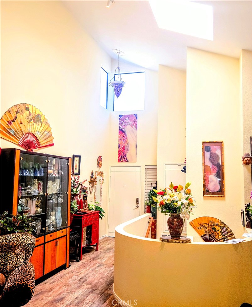 2 Bed, 2.5 Bath + Den/Office. Perched atop the coveted hills of Tierrasanta — dubbed the “island in the sky”—this exceptional residence offers a lifestyle that feels both secluded and connected. With two spacious bedroom suites, a versatile office/guest bedroom, and 2.5 baths, this property is designed to please those who value comfort, tranquility and centrality. The tree-lined community has no through streets and is just one block from Mission Trails Regional Park, where you will enjoy unmatched access to nature while remaining minutes from shopping, dining, and major freeways. In perfect harmony with the community, this rare residence is the only home in the Sunset Ridge community that has a private garden space, which is large and wraps around the home, as well as a large upper deck revealing beautiful sunset and mountain views. Abundant natural light spill inside onto the main open floor plan featuring a large, central room with dramatic 28-foot vaulted ceilings, highlighted with glowing skylights and artisanal lighting. The south and east wall have 22 feet of solid glass that seamlessly connect inside and out and lead to the ample upper deck. The home is highlighted with graceful architectural detail .... A circular staircase, elegant marble fireplace surround, cathedral windows, and elegant, wood-looking ceramic tile throughout! The updated chef’s kitchen is a dream, featuring a pop out garden window, stainless countertops, beautiful black lacquer wood cabinetry, steel gray GE 27.7 cu ft French door refrigerator, ample pantry space & a commercial grade Wolf range. The main floor also features the third extra room (office/guest bedroom), with a garden window and beautiful wood built ins. You enter the Master through large French doors into an ample and bright space, featuring two solid walls of glass that wrap around and glass doors that open to the beautiful private gardens, with his & her (walk in) closets, a luxurious, newly remodeled bathroom, separate oversized shower, Grecian soaking tub and walls of mirrors. The large second BR also opens to the garden, has ample closets, a large, full bath and stained-glass details. At 1647 sq. ft, with five closets, a walk-up attic over the 2-car garage, the storage is ample. New renovations include central A/C, bathroom remodeling, new floors, new refrigerator, new water heater, new fence and newly painted. This property is turnkey ready and priced to sell.