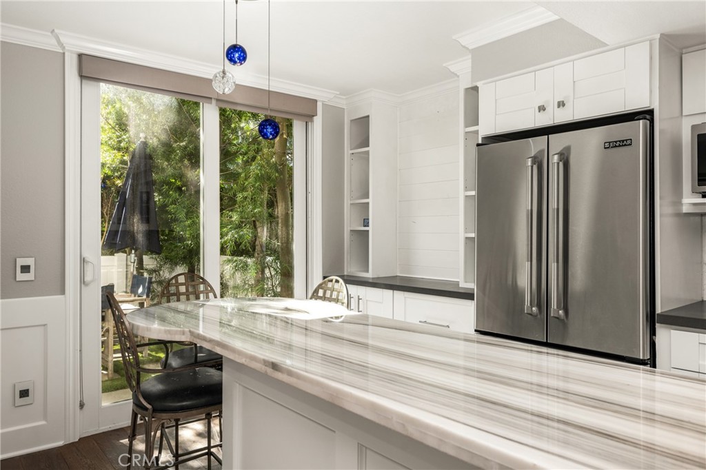Very rare opportunity within the highly sought-after Beacon Hill community of Coastal Laguna Niguel, this beautifully upgraded, perfectly located residence blends timeless design with modern comfort in a private, inviting setting. This 2-bedroom, 2.5-bath highly upgraded and truly turn-key home showcases thoughtful craftsmanship throughout, beginning with rich wood floors, designer carpet, recessed lighting, and elegant wainscoting and molding details that elevate every space. The light-filled kitchen is both stylish and functional, featuring marble countertops, stainless steel appliances, a premium Thermador range, and a large center island with seating, ideal for casual dining and entertaining. A charming bay window enhances the space, while custom shades and drapes add a refined finishing touch. Upstairs, the serene primary suite offers a true retreat with a spacious private balcony, perfect for morning coffee or evening relaxation. The expansive walk-in closet with custom built-ins provides exceptional storage and organization. The secondary bedroom is generously sized and complemented by well-appointed full bathrooms with tasteful finishes. Enjoy a cute and private backyard, ideal for al fresco dining, gardening, or quiet moments of relaxation. Additional highlights include a half bath on the main level, a 2-car attached garage, and washer and dryer conveniently located in the garage. Residents of Beacon Hill enjoy access to resort-style amenities including pools, tennis courts, lush greenbelts, and scenic walking trails, all just minutes from shopping, dining, beaches, and everything the coastal Laguna Niguel lifestyle has to offer.