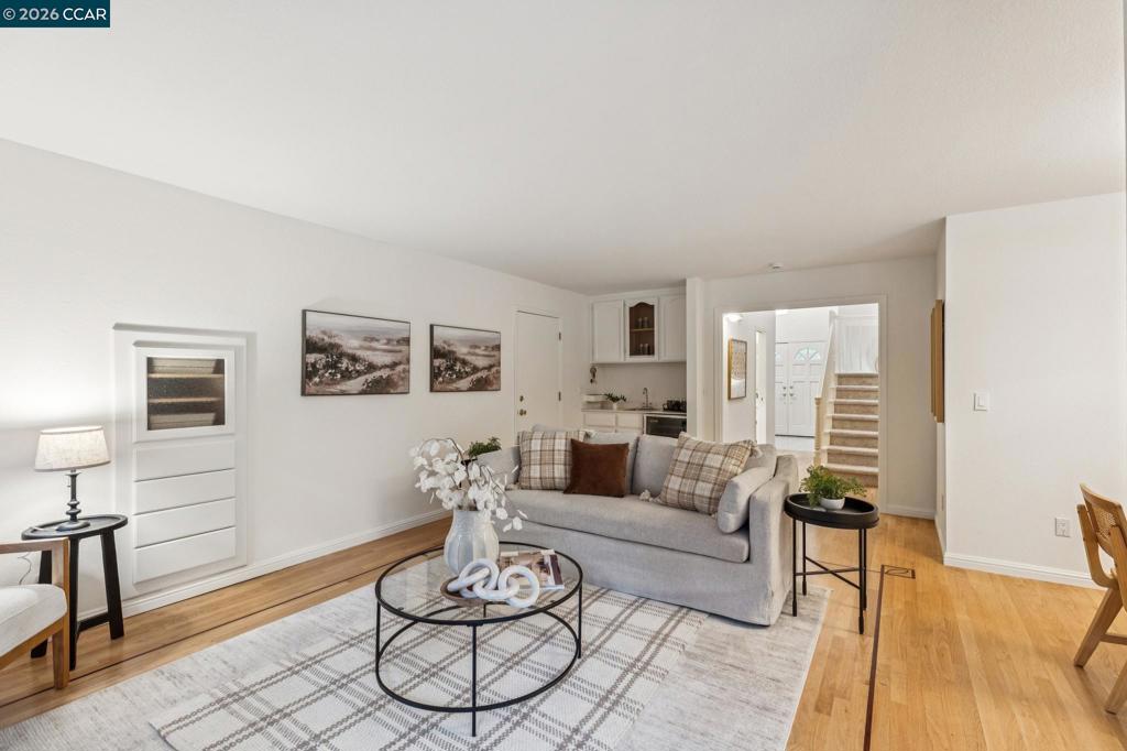 Generously sized home with comfortable living areas, soaring ceilings and fabulous primary retreat! (with Views as well!) This court- appointed home offers the best of both worlds: the privacy of a court, with proximity to town + the highway! This lovely home has been freshly updated & is ready for YOU! Double doors welcome you into the formal living room where vaulted ceilings & a gas-starter fireplace await. Swing around the stairwell & you're presented with the kitchen/dining nook/family room area: all cozy, open to one another & delightfully presented. Hardwood floors grace this place, high end lighting from Walnut Creek Lighting Co & Anthropologie illuminate it just so. A first floor bedroom w/ ensuite bath is the ideal at-home office or guest bedroom. Meander upstairs & you'll find the primary bedroom suite: a thoughtfully planned room with (more!) vaulted ceilings, massive walk-in/walk-through closet AND... a large ensuite bath w/ new gorgeous tile floors, soaking tub overlooking the backyard and stall shower. Hall bath also features new tile floors, and new cozy, smells-amazing carpet can be enjoyed throughout this home as well. A 3 car garage means you can park cars AND set up a work bench/gym here! Prime location, just 6 miles to Highway 24 + 1.8 miles to Highway 680!