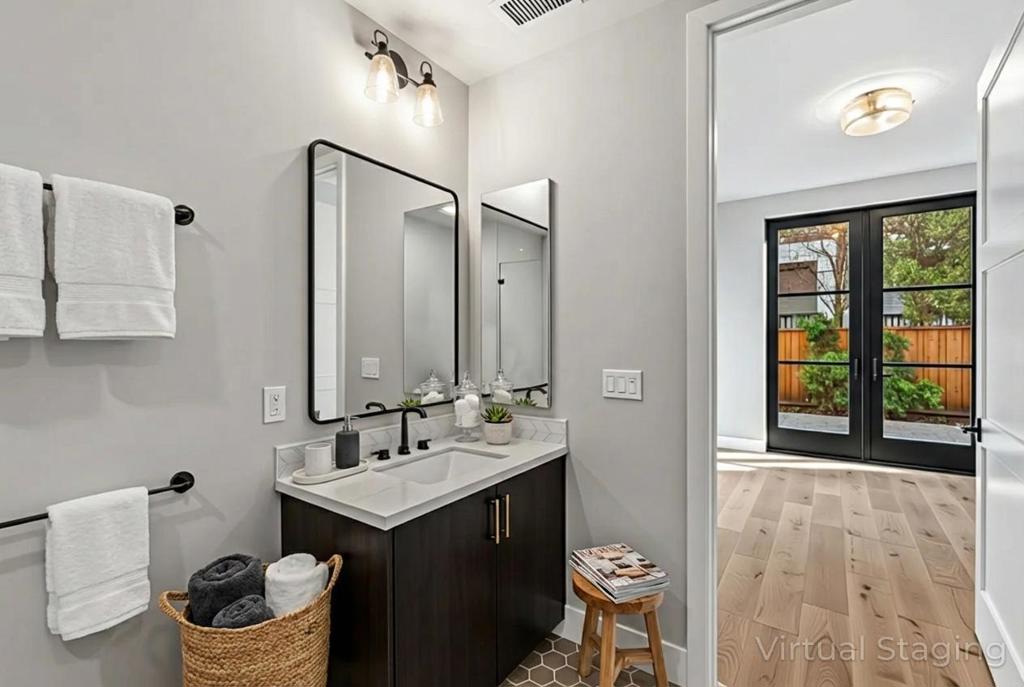 Discover quiet luxury and modern elegance in this exceptional downtown residence. The open-concept living room features soaring ceilings and luxury NanaWall folding glass doors, filling the home with natural light and creating seamless flow between spaces. The chefs kitchen is outfitted with Thermador appliances, integrated refrigerator and dishwasher, and custom wood cabinetry that perfectly blends function and elegance. Engineered wood flooring runs throughout, enhancing the homes clean, modern design. Step outside to an extraordinarily large private backyard, a rare feature for new construction and downtown living, offering exceptional privacy and a true single-family-home feel -- ideal for BBQs, outdoor dining, yoga, or entertaining. Built with enhanced sound-insulation, this home offers exceptional quiet and privacy even in the vibrant city core. Additional highlights include 2 underground parking spaces per unit, EV-charging infrastructure, a gated community with landscaped courtyards. Unbeatable location -- walk to cafes, fine dining, shopping, and Caltrain; minutes to major highways (101, 85, 237), and top tech campuses including Google, Meta, Nvidia, Apple and many more. Live where innovation meets style, enjoy modern elegance in the heart of Silicon Valley.