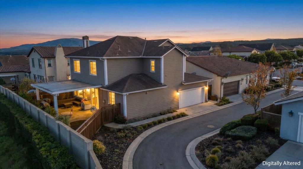Experience modern luxury in this 4-bedroom, 3.5-bath Promenade Colton home in East Garrison. Spanning 2,417 sq ft, the versatile floor plan is highlighted by a rare ground-floor en suite, featuring a private full bedroom and bathroom perfect for guests, a home office, or multi-generational living. The heart of the home is a gourmet kitchen with a massive granite island, walk-in pantry, and premium Italian Bertazzoni appliances, flowing seamlessly into an airy open-concept family room with high ceilings and a cozy gas fireplace. Elegant hardwood and tile flooring run throughout, leading to an upper level designed for comfort. The primary suite offers a private retreat with a spacious walk-in closet and stunning, unobstructed views of the Salinas Valley. Two additional guest bedrooms and a conveniently located upstairs laundry room complete the interior. Outside, enjoy a solid-roof pavilion with recessed lights, a gas fire pit, and fountain. This energy-efficient home features central forced air, a water softener and is located within the Monterey Peninsula Unified School District, just minutes from regional trails and coastal beaches. Combining functionality with high-end finishes, this gorgeous home is the ultimate turnkey residence.