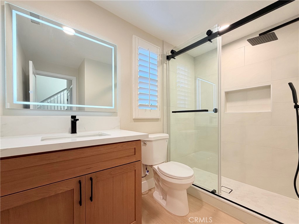 COMPLETELY REMODELED and FULLY DETACHED (no shared walls), this corner-lot Ivy Wreath home is ideally located in the highly sought-after Quail Hill community. The residence has been beautifully refreshed with fresh interior paint and premium luxury vinyl plank flooring throughout. The bright and spacious great room features built-in shelving, creating the perfect space for both everyday living and entertaining. The stunning chef’s kitchen overlooks the dining area and great room and showcases quartz countertops, sleek white cabinetry, and new stainless-steel appliances. Enjoy indoor-outdoor living with a balcony just off the breakfast nook, perfect for morning coffee or evening relaxation. All bedrooms offer the privacy of en-suite bathrooms, plus an additional powder room for guests. Every bathroom has been upgraded with new cabinetry and quartz countertops. The versatile floor plan includes one bedroom on the first level and two bedrooms on the third level, along with a dedicated study nook featuring a built-in desk and shelving, ideal for working from home, studying, or homework time. Additional highlights include inside laundry and a two-car garage with new garage doors and epoxy flooring. A private front patio provides a welcoming outdoor retreat. Enjoy a prime location within walking distance to Alderwood Elementary, community pools, parks, shopping, and restaurants, and just minutes from the Irvine Spectrum Center for premier business, entertainment, and dining.