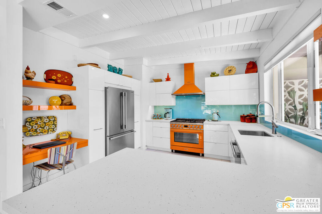 Rare opportunity to own your own piece of history. This meticulously restored 1958 iconic architectural home, designed by William Krisel, offers the perfect blend of Mid Century history coupled with modern elegance. The large open great room features a grand classic fireplace. The vibrant gourmet kitchen offers high end chef's appliances as well as large peninsula seating and a stylish work nook, all open and flowing to the dining area. This home is filled with natural light through the large windows all around. Additionally, there are two large primary suites, both en suite with full baths. The powder room off the great room is a wonderful addition for parties and get togethers. Hang out on the gorgeous patio outdoor living area, surrounded by lush landscape and citrus trees, ideal for evening outdoor dining. The front yard is privately secluded with its own hedge, landscaped with plush astro turf, perfectly inviting for hanging out with family, friends and pets. A two car garage included to house pool toys, bikes, and your dream sports car. Tamarisk Ranchos 1958 by William Krisel is a resort-style community featuring 16 homes around the central pool area, with illustrious views of the San Jacinto mountains. This architectural historical home has been prominently featured on the Palm Springs Modernism Tour, and also carries it's own historical designation, allowing the owner to benefit from the Mills Act. Nestled in Rancho Mirage, the Playground of the Presidents, on Fee land (you own the land), within close proximity to world class shopping, dining, golf, hiking and culture