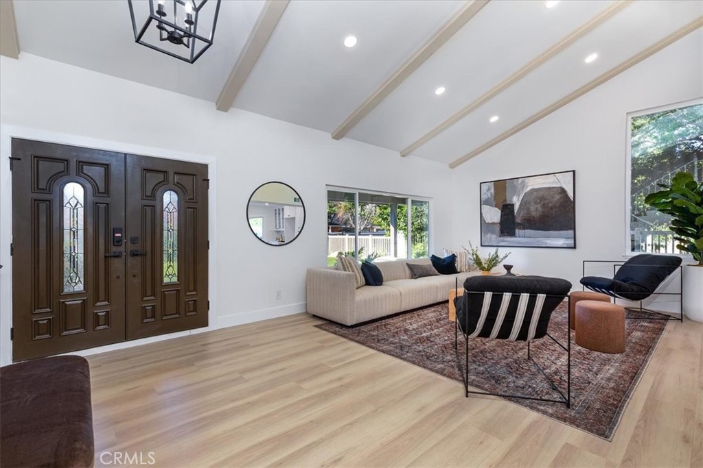 Welcome to a truly special Chatsworth residence that blends timeless character with thoughtful modern updates. Nestled in one of Chatsworth’s most sought-after enclaves, this 5-bedroom, 3-bath property offers nearly 3,000 sq ft of living space on an expansive 0.40-acre lot. Meticulously cared for and upgraded with quality materials, key features include a terracotta ceramic roof plus a dual-zone HVAC system. The interior and exterior have been refreshed with new paint. The front of the home showcases manicured landscaping, a large gate and a 3-car garage. Through the double front doors, you’re welcomed by a formal living room with vaulted beamed ceilings, which seamlessly flows to the back of the home where you will find the kitchen and dining room with large patio doors opening to the backyard. Adjacent to the heart of the home is the cozy family room with a fireplace, and abundant natural light. The kitchen has been almost entirely rebuilt with new appliances, a large center island, plenty of cabinetry, a dining area, and sliding door access to the spacious backyard. —plus, a renovated hallway bathroom and large laundry room with built-in storage. Upstairs you will enjoy the private primary suite with a fireplace, a walk-in closet, and an ensuite bathroom featuring dual sink vanity, a soaking tub, and a large shower with a separate vanity area. An additional remodeled hallway bathroom serves the remaining three spacious bedrooms, which offer ample space and storage. The backyard offers a large pool, multiple patios, and lush landscaping surrounded by mature trees. Don’t miss this rare opportunity to own a one-of-a-kind home in Chatsworth—minutes from hiking trails, parks, Mountain View’s, and just minutes from upscale shopping and dining.