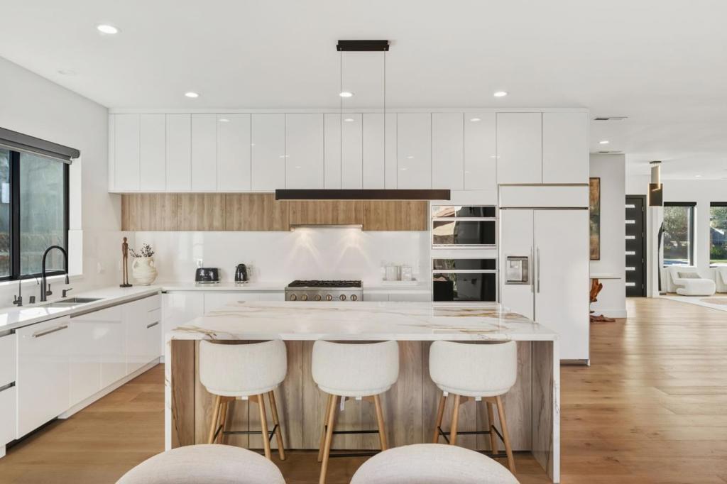 Experience stunning modern living in this architecturally impressive new construction in prime Willow Glen. With 2,825 sq ft of living space on a 7,150 sq ft lot size, this 4bed /3.5 bath home features clean contemporary lines, 10-ft ceilings, vertical picture windows, and wide-plank engineered hardwood floors throughout. Open-concept layout with expansive Milgard stackable sliding doors creates seamless indoor-outdoor living. Chefs kitchen showcases an oversized porcelain waterfall island, custom European cabinetry, and high-end Monogram appliances including a cabinet-paneled refrigerator. Bathrooms offer floating vanities with porcelain tops, sculpted Italian stone sinks, Italian large-format tile floor-to-ceiling, and Grohe/Isenberg fixtures with built-in Toto washlet toilets. Luxurious primary retreat includes abundant natural light, walk-in closet, and backyard access. Finished 230 sq ft basement ideal for office/gym/wine room/studio. Additional highlights: solid-core interior doors, custom fiberglass double entry doors, high-end window shades, surround sound, smart dimmers, whole house water filtration/softener, low-maintenance landscaping, and outdoor kitchen hookups. Walk to top Willow Glen schools & downtown. Main level is 2595 sqft, finished basement is 230sqft.