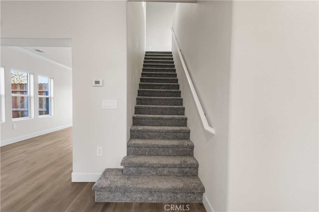 NEW CONSTRUCTION – Capella Terrace | Southeast Merced Built with an emphasis on quality craftsmanship and thoughtful design, this new construction home offers 4 bedrooms, 2.5 bathrooms, 9-foot ceilings, and a huge open floor plan that feels both elevated and functional. The layout is intentionally designed to enhance everyday living, with a finished garage offering extra room—ideal for a home gym, storage, or workspace—along with storage cabinets throughout the home and dual closets in the primary suite. The upstairs laundry room with sink adds convenience where it matters most. Additional highlights include soft-closing cabinets, premium-quality finished garage walls, very plush carpeting, a whole house fan designed to help circulate air during warm Central Valley conditions, and an all-electric design built to current energy-efficiency standards and paired with solar. The primary bathroom features a custom tile shower, while double sinks in the bathrooms add both style and functionality. Enjoy seamless indoor-outdoor living with a covered patio. No HOA. Conveniently located near Campus Parkway and Hwy 99.
