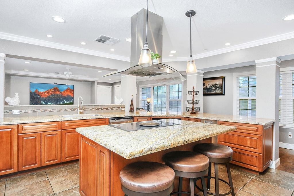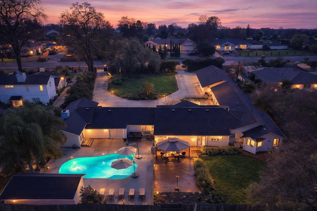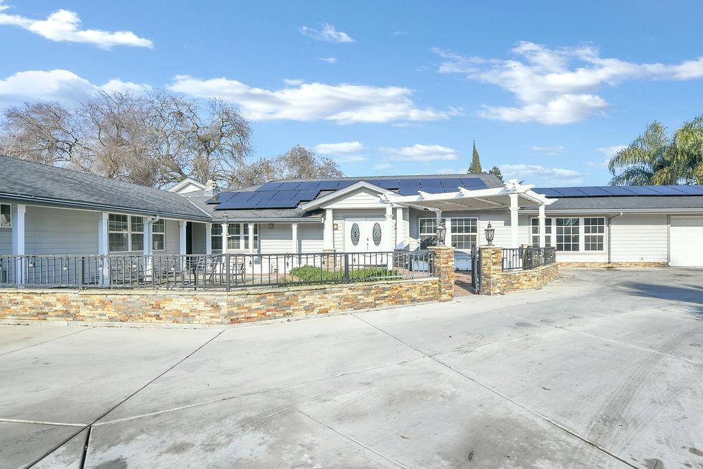 Set behind a private gated entrance, this North Stockton estate offers a resort-caliber, vacation-at-home lifestyle with rare privacy in a central location. Situated on approximately 0.72 acres, The Stockton Compound features solar, a pool and spa, manicured grounds, and a thoughtfully designed layout offering flexibility for multi-generational or extended-stay living, all minutes from shopping, dining, and freeway access. The estate includes two attached guest-style living areas, each with its own private entrance, offering bedroom and bath accommodations with potential kitchenette use, designed for comfort and separation. Smart-home features include four HVAC systems for efficient climate control and a security system for added peace of mind. A standout feature is the exceptional garage configuration, including a rare drive-through garage paired with two separate two-car garages, offering outstanding capacity and versatile use. A long private driveway, generous parking, and expansive grounds reinforce the estate setting. Outdoor living rivals a private retreat, with a resort-inspired backyard featuring a pool, spa, pergola, and outdoor kitchen. A rare, gated estate blending privacy, scale, and convenience. Must be seen to be appreciated. Central yet completely private.
