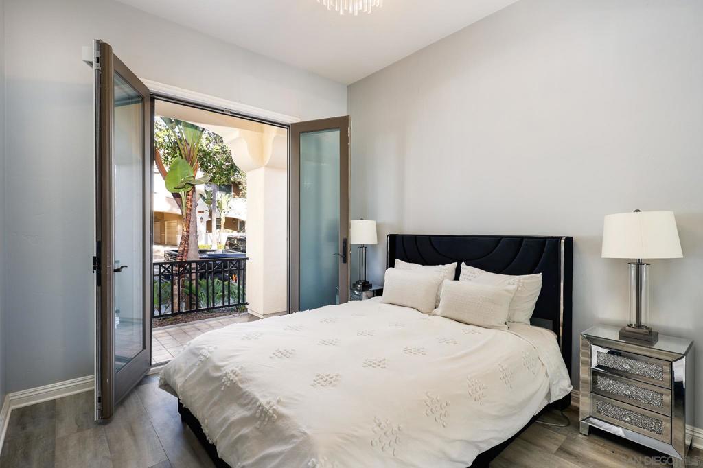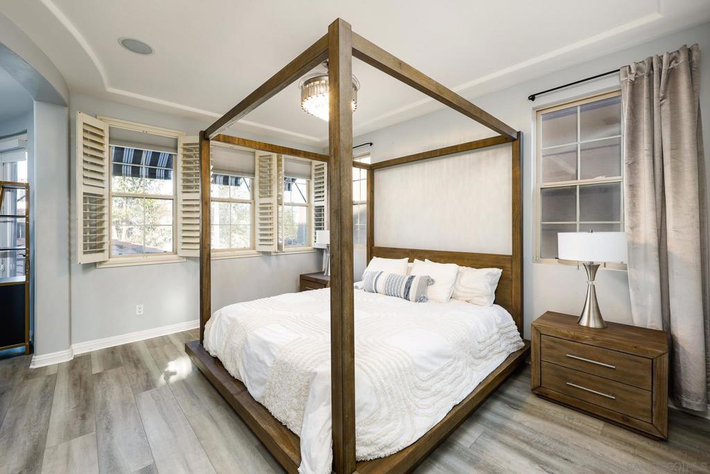 Rarely available and truly turn-key, this beautifully appointed 3-bedroom, 3-bath home offers a thoughtfully designed layout ideal for everyday living. The third-floor loft features a 10-foot movie screen, making it the perfect space for movie nights, game days, or entertaining. The home has been tastefully upgraded with vinyl wood plank flooring, custom blinds, updated lighting, and a brand-new HVAC system. Additional highlights include a private enclosed entry courtyard, solar, a water softening system, and an attached two-car garage with overhead storage and a Tesla charger. Located within the master-planned Liberty Station community, this home offers a low HOA, an unbeatable central location minutes to the airport, and close proximity to dining, arts, entertainment, schools, and convenient retail.