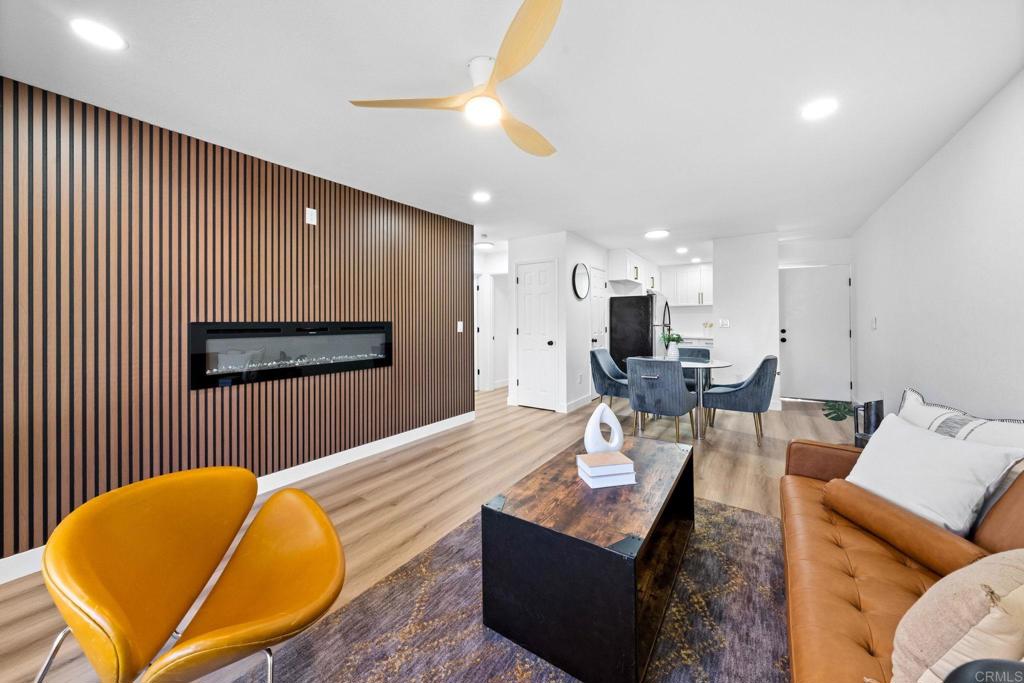 Stylishly Renovated 2-Bedroom Condo Near SDSU! Welcome to this beautifully renovated 2-bedroom, 1-bath condo in the heart of San Diego, just minutes from SDSU! This ground-floor unit has been thoughtfully updated with modern finishes throughout, including new vinyl plank flooring, fresh paint, sleek baseboards, and designer fixtures. The inviting living room features a stunning accent wall with a modern electric fireplace and new recessed lighting—perfect for cozy nights in. Enjoy a fully upgraded kitchen equipped with stainless steel appliances. The unit also features a wall AC unit in the living area for year-round comfort. With two assigned parking spots, a community laundry room, and a central location close to schools, shops, dining, and public transit, this move-in-ready gem offers the perfect blend of style and convenience.