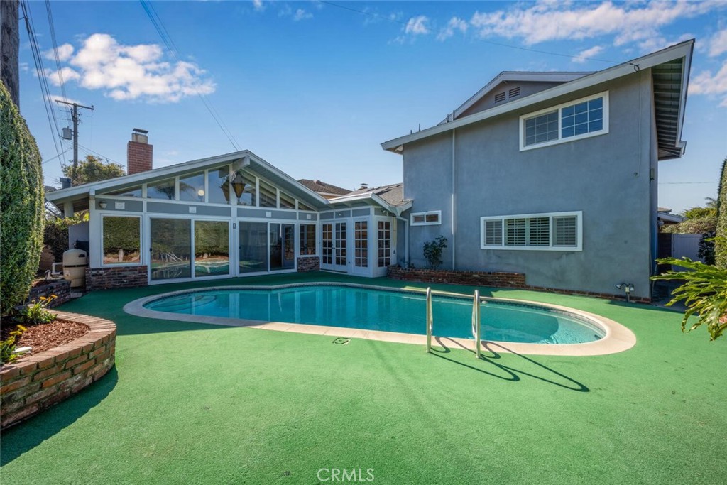 Desirable Fairway Park home tucked away on a peaceful cul-de-sac, ideally located near award-winning Cypress schools, including prestigious Oxford Academy. Enjoy close proximity to parks, soccer fields, major freeways, popular restaurants, and convenient shopping at Costco and Trader Joe’s. This well-appointed home features forced-air heating and cooling, dual-pane windows throughout, a dedicated inside laundry room, and a downstairs utility third bathroom. Fresh interior paint enhances the bright, open feel. The spacious downstairs master bedroom offers recessed lighting, plantation shutters, an oversized closet with mirrored sliding doors, and a private en-suite bathroom. Designed for entertaining, the expanded family room showcases vaulted ceilings, a wet bar with beverage refrigerator, and a gas-burning fireplace—perfect for hosting friends and family on game day. The main living room features a second gas fireplace, recessed lighting, smooth ceilings, and plantation shutters. Upstairs, you’ll find three generously sized bedrooms, each with ample closet space, smooth ceilings, and dual-pane windows. The fully remodeled upstairs bathroom impresses with dual sinks, abundant cabinetry, quartz countertop, and a beautifully finished tub-and-shower combo with custom glass enclosure. Exterior highlights include excellent curb appeal, a private interior location, double-wide front entry doors, an in-ground swimming pool, and an ultra-private backyard. Additional upgrades include a paved driveway, recently installed roof, leased solar system with upgraded 200-amp electrical panel, new roll-up garage door, direct garage access, and timeless mature landscaping. This home truly checks all the boxes—location, schools, comfort, and lifestyle. Come see it for yourself.