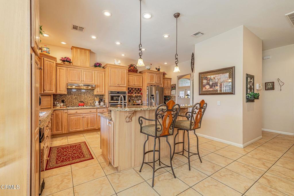Welcome to this exceptional luxury residence located inside the prestigious AV Country Club Estates, where elegance, comfort, and resort-style living come together seamlessly. This amazing home has paid-for solar, stunning curb appeal, and beautifully landscaped front and back yards, this 4-bedroom, 4-bath home offers 3,262 sq ft of refined living on an expansive 13,267 sq ft lot. The impressive living room showcases rich wood floors, a dramatic dark-tiled fireplace, and a custom built-in bookcase complete with a rolling ladder, while the inviting family room features a second stone fireplace. Entertain effortlessly in the formal dining room and the open chef's kitchen, highlighted by hardwood cabinetry, premium Cambria countertops, stainless steel appliances, a center island with prep sink, garden window overlooking the pool, built-in wine cabinet, and walk-in pantry. Custom shutters, ceiling fans throughout, and dual central HVAC enhance comfort and style. The oversized primary suite offers his-and-hers walk-in closets and direct access to the backyard oasis, complemented by a spa-like bathroom with dual sinks, a beautifully tiled whirlpool tub, and separate shower. Outside is an entertainer's dream with an in-ground saltwater pool featuring a sunbathing deck and automatic cover, plus a covered gazebo with built-in BBQ and refrigerator. Additional highlights include a tile roof, 3-car-plus garage with extra cabinetry and attic storage, extended RV parking, and thoughtful details throughout--truly a spectacular home, beautiful inside and out!