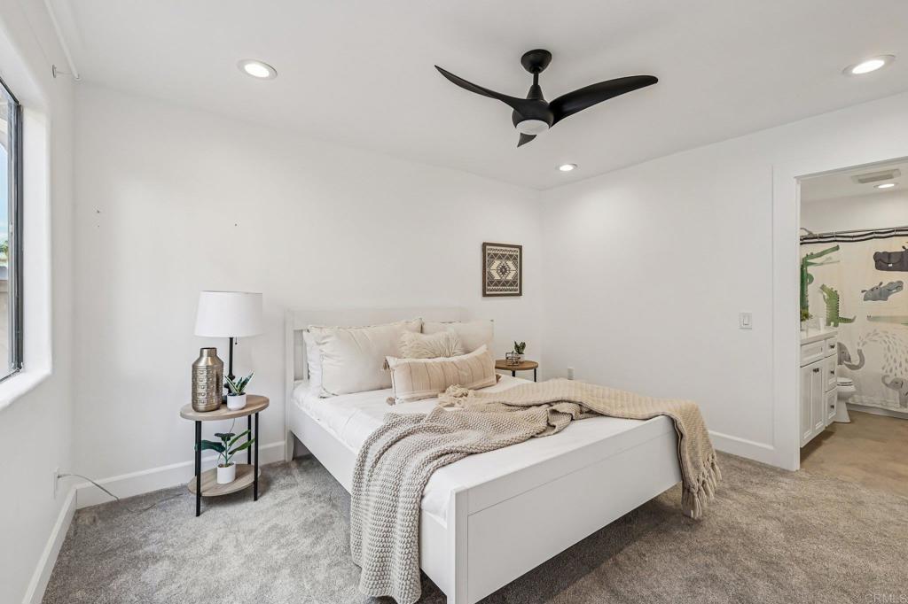 Situated in the highly desirable neighborhood of Rancho Peñasquitos, this beautifully updated 5-bedroom, 5.5-bathroom residence offers exceptional value in one of San Diego’s most sought-after communities. Located within the top-rated Poway Unified School District and spanning over 3,130 square feet, this thoughtfully designed home blends modern updates with versatile living spaces, providing an ideal foundation for your personal vision. The main level features an expansive great room-style layout that seamlessly connects living and entertaining areas, along with a secondary suite, two additional bedrooms, a private office, and a dedicated laundry room—perfect for multigenerational living, guests, or remote work. A striking floating staircase leads to the upper level, where you’ll find a spacious primary suite complete with a walk-in closet, custom-designed bathroom, and an oversized private deck ideal for relaxing or enjoying evening views. A second upstairs bedroom with its own en suite bath adds additional comfort and privacy. The large backyard presents a rare opportunity to create your dream outdoor retreat, with ample space for a pool, outdoor kitchen, garden, or entertainment area—all set on a generous cul-de-sac lot. Recent upgrades include a new electrical system with upgraded panel, a re-pipe of the interior water system, radiant roof barrier, and top tier insulation. The home is wired for upgraded HVAC systems along with smart home technology With no Mello-Roos fees, no HOA dues, and a prime location near shopping, dining, parks, and freeway access, this home offers both lifestyle and convenience. This is a standout opportunity in Rancho Peñasquitos and is not expected to last long.